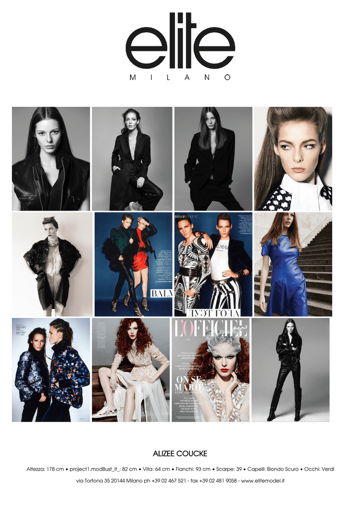 ALIZEE COUCKE Altezza: 178 cm • project1.modBust_it_: 82 cm • Vita: 64 cm • Fianchi: 93 cm • Scarpe: 39 • Capelli: Biondo Scuro • Occhi: Verdi via Tortona 35 20144 Milano ph +39 02 467 521 - fax +39 02 481 9058 - www.elitemodel.it ALIZEE COUCKE Altezza: 178 cm • project1.modBust_it_: 82 cm • Vita: 64 cm • Fianchi: 93 cm • Scarpe: 39 • Capelli: Biondo Scuro • Occhi: Verdi via Tortona 35 20144 Milano ph +39 02 467 521 - fax +39 02 481 9058 - www.elitemodel.it