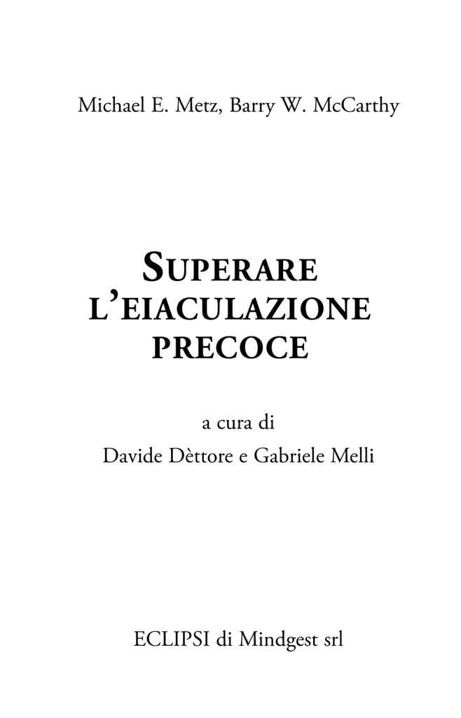 Michael E. Metz, Barry W. McCarthy SUPERARE L’ EIACULAZIONE PRECOCE a cura di Davide Dèttore e Gabriele Melli ECLIPSI di Mindgest srl Traduzione italiana di: COPING WITH PREMATURE EJACULATION Traduzione: dott.ssa Barbara Santoni Cura: prof. Davide Dèttore, dott. Gabriele Melli Editing e videoimpaginazione: Camilla Romoli Copyright © 2003 New Harbinger Publications, Inc. 5674 Shattuck Avenue Oakland, CA 94609 Copyright © 2006 Eclipsi di Mindgest srl Via Mannelli 139 50132 Firenze Tel. 055-2466460 – Fax 055-2008414 ISBN 88-89627-00-X I diritti di traduzione, di riproduzione, di memorizzazione elettronica, di adattamento totale e parziale con qualsiasi mezzo (compresi i microfilm e le copie fotostatiche) sono riservati per tutti i paesi. SOMMARIO 1. Capire l’eiaculazione precoce 1 2. Sviluppare aspettative realistiche sulla sessualità 21 3. Comprendere le cause e gli effetti dell’eiaculazione precoce 41 4. Valutare la propria eiaculazione precoce 67 5. Pianificare il trattamento e prepararsi all’azione 81 6. I trattamenti medici 99 7. Abilità e strategie psicologiche e relazionali 113 8. Le abilità sessuali: godere dell’eccitamento e controllare l’orgasmo 141 9. Come costruire uno stile sessuale di coppia intimo ed interattivo 181 10. Godere della sessualità e prevenire le ricadute 197 11. Come scegliere un terapeuta individuale, di coppia o sessuale 215 RISORSE 217 PREFAZIONE DEI CURATORI Il volume di Metz e McCarthy spicca nel panorama letterario americano per il fatto che le proposte teoriche e terapeutiche degli autori sono perfettamente in linea con quanto messo in luce, fino ad oggi, dalla sessuologia scientifica internazionale sull’eiaculazione precoce e sul suo trattamento. Tale disfunzione, come avrete modo di apprendere, non ha, allo stato attuale, una causa unica ben definita. Le possibili basi organiche sono state sufficientemente chiarite, ma non sono ancora del tutto certe né, soprattutto, sufficienti a spiegare tutti i casi. Non esistono neppure aspetti psicologici comuni a tutti gli eiaculatori precoci: certamente, non si tratta di uomini che odiano le donne o temono la castrazione, come sostenevano le vecchie teorie psicoanalitiche, ma, pur potendo escludere tali ipotesi, ci troviamo di fronte a molteplici altre spiegazioni psicologiche, variabili da soggetto a soggetto e non generalizzabili. Ciò rende difficile il trattamento dell’eiaculazione precoce e dimostra come fosse eccessivo e semplicistico l’ottimismo dei primi studiosi, come Masters e Johnson o la Kaplan, riguardo al successo degli approcci di terapia sessuale per questa disfunzione sessuale. È bene essere consapevoli di questa realtà, per calibrare le proprie aspettative ed evitare delusioni. Attualmente è accettabile e fondato scientificamente soltanto un trattamento ad ampio spettro, che prenda in considerazione cause di vario genere, sia organiche sia psicologiche, ed utilizzi molteplici metodiche di trattamento, mirate a diversi aspetti: le mansioni sessuali, gli interventi atti a incrementare l’intimità con se stessi, il proprio corpo e quello della partner, il training di comunicazione di coppia, la modificazione delle convinzioni errate e dei miti sulla sessualità ed, eventualmente, i farmaci. Il bel libro di Metz e McCarthy si adegua completamente a tale impostazione e presenta un intervento multimodale, cosiddetto “bio-psico-sociale”, che prende in considerazione tutti questi aspetti, rendendolo completo e corretto dal punto di vista scientifico. Questo libro, inoltre, non costituisce solo una valida risorsa per l’acquisizione del controllo eiaculatorio, ma anche un ottimo strumento per il miglioramento della relazione di coppia e dell’autoconoscenza corporea, aspetti certamente importanti per poter aumentare la qualità della propria vita sessuale. Non possiamo, quindi, che augurare al volume un successo immediato ed una diffusione ampia e giustamente meritata anche in Italia, dove i libri di auto-aiuto sono scarsamente impiegati, quando invece, se ben fatti come questo, possono essere molto utili. Nei casi più semplici, offrono un metodo per risolvere da soli un problema, in quelli più complessi possono costituire un valido sussidio “didattico” per una terapia sessuale condotta da un professionista specializzato. Il volume, infine, potrà essere interessante per qualsiasi persona che voglia anche solo migliorare le proprie conoscenze in un ambito, come quello sessuale, in cui ciò che si impara non è mai abbastanza. Buona lettura a tutti. Davide Dèttore Professore Associato di Psicologia e Psicopatologia del Comportamento Sessuale, Università degli Studi di Firenze. Gabriele Melli Istituto di Psicologia e Psicoterapia Comportamentale e Cognitiva, Firenze. 1 CAPIRE L’ EIACULAZIONE PRECOCE Cos’è l’eiaculazione precoce? Sembrerebbe una domanda facile, ma la risposta dipende fondamentalmente dal soggetto al quale viene posta. I fondatori della moderna terapia sessuale, Masters e Johnson, dichiaravano che un uomo che, nel 50% o più dei suoi rapporti sessuali, eiaculava prima che la donna avesse raggiunto l’orgasmo poteva dirsi affetto da eiaculazione precoce. L’eiaculazione precoce è definita, talvolta, come una difficoltà a portare avanti il rapporto, dal momento della penetrazione a quello dell’eiaculazione, per un tempo cosiddetto “normale”. Alcuni studiosi l’hanno definita in base al tempo di durata della penetrazione: meno di un minuto, due, tre, quattro, cinque, sette o dieci minuti, a seconda del criterio utilizzato. Altri, invece, in base alla quantità di spinte in vagina prima dell’eiaculazione: otto spinte, quindici spinte, e così via. La migliore definizione scientifica di eiaculazione precoce è la seguente: l ’uomo, durante la maggior parte dei suoi rapporti, non ha il controllo volontario e consapevole dell ’eiaculazione né la capacità di scegliere quando eiaculare. Riteniamo che questa sia la definizione pi