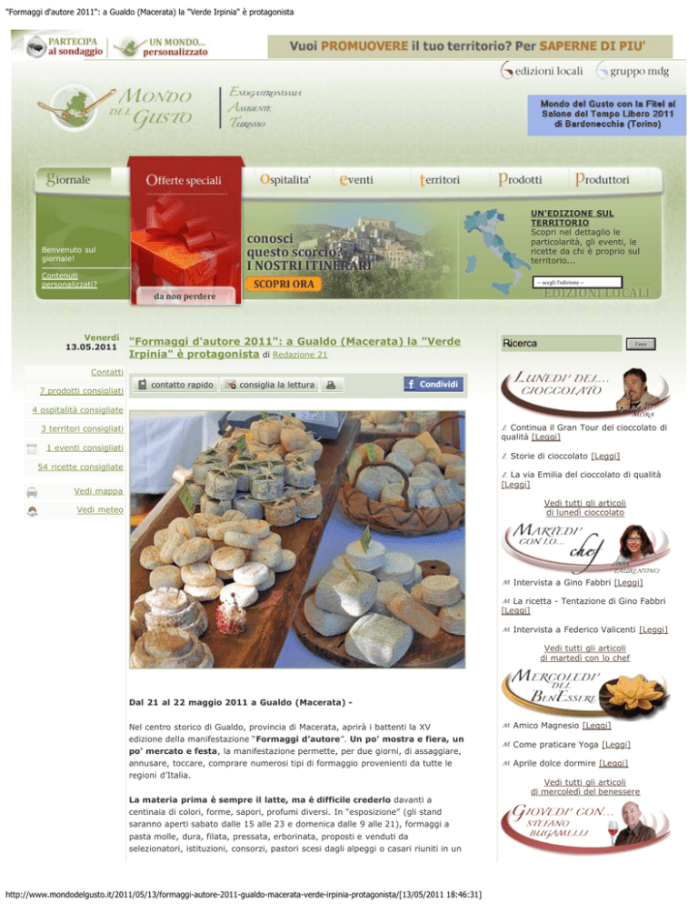 "Formaggi d'autore 2011": a Gualdo (Macerata) la "Verde Irpinia" è protagonista UN'EDIZIONE SUL TERRITORIO Scopri nel dettaglio le particolarità, gli eventi, le ricette da chi è proprio sul territorio... Benvenuto sul giornale! Contenuti personalizzati? Venerdì 13.05.2011 -l'edizione ---scegli scegli l'edizione "Formaggi d'autore 2011": a Gualdo (Macerata) la "Verde Irpinia" è protagonista di Redazione 21 -- Ricerca Cerca Contatti 7 prodotti consigliati contatto rapido consiglia la lettura Condividi 4 ospitalità consigliate Continua il Gran Tour del cioccolato di qualità [Leggi] 3 territori consigliati 1 eventi consigliati Storie di cioccolato [Leggi] 54 ricette consigliate La via Emilia del cioccolato di qualità [Leggi] Vedi mappa Vedi tutti gli articoli di lunedì cioccolato Vedi meteo Intervista a Gino Fabbri [Leggi] La ricetta - Tentazione di Gino Fabbri [Leggi] Intervista a Federico Valicenti [Leggi] Vedi tutti gli articoli di martedì con lo chef Dal 21 al 22 maggio 2011 a Gualdo (Macerata) Nel centro storico di Gualdo, provincia di Macerata, aprirà i battenti la XV edizione della manifestazione “Formaggi d’autore”. Un po' mostra e fiera, un po' mercato e festa, la manifestazione permette, per due giorni, di assaggiare, annusare, toccare, comprare numerosi tipi di formaggio provenienti da tutte le regioni d’Italia. La materia prima è sempre il latte, ma è difficile crederlo davanti a centinaia di colori, forme, sapori, profumi diversi. In “esposizione” (gli stand saranno aperti sabato dalle 15 alle 23 e domenica dalle 9 alle 21), formaggi a pasta molle, dura, filata, pressata, erborinata, proposti e venduti da selezionatori, istituzioni, consorzi, pastori scesi dagli alpeggi o casari riuniti in un http://www.mondodelgusto.it/2011/05/13/formaggi-autore-2011-gualdo-macerata-verde-irpinia-protagonista/[13/05/2011 18:46:31] Amico Magnesio [Leggi] Come praticare Yoga [Leggi] Aprile dolce dormire [Leggi] Vedi tutti gli articoli di mercoledì del benessere "Formaggi d'autore 2011": a Gualdo (Macerata) la "Verde Irpinia" è protagonista Presidio Slow Food. le Erbe aromatiche per una cucina da chef [Leggi] La manifestazione si svolge nel cuore del centro antico di Gualdo. L’evento rappresenta quindi un’occasione attrattiva anche per visitare il piccolo borgo medievale, dalle vie tortuose e strette, con la chiesa di San Savino e la chiesa della Madonna delle Grazie e lo sguardo sull’incantevole scenario dei monti Sibillini. Da quest’anno con il gemellaggio con la condotta Slow Food dei Monti Sibillini da parte della Condotta Slow Food Irpinia Colline dell’Ufita e Taurasi alla manifestazione ci sarà anche un po’ d’Irpinia. Uno stand della condotta Irpina darà l’opportunità a varie aziende irpine di promuoversi e far conoscere i prodotti lattiero caseari e agroalimentari dell’area del Miscano, dell’Ufita, del Calore e della Baronia. Un apposito Laboratorio del Gusto è stato programmato per domenica 22 maggio alle ore 16.00 dal titolo “La Verde Irpinia, i pascoli, le viti e i formaggi d’Autore", dove i formaggi di pecorino di Laticauda dell’Azienda Ricciardi di Monte calvo Irpino, il pecorino bagnolese della Cooperativa di Bagnoli, del Carmasciano di Forgione Carmela e del Caciocavallo Podolico di Montella saranno accompagnati dall’Aglianico di Antonio Caggiano, dal Taurasi della cantina GMG, dal Fiano della cantina Filadoro e dal passito MEL sempre della cantina Caggiano. il Fico Bianco del Cilento [Leggi] con il progetto “NU-AGE”, lunga vita in piena salute per tutti gli anziani [Leggi] Vedi tutti i giovedì con Stefano Bugamelli Frullato di...magnesio! [Leggi] Il Panir [Leggi] Il Ghee [Leggi] Vedi tutti gli articoli di venerdì delle ricette yogiche Altro appuntamento molto importante e pieno di bontà irpina è lo spazio che occuperà la delegazione della Condotta irpina all’interno del cosiddetto “cibo di strada” che propone irresistibili sfiziosità per chi ha fretta (dalla porchetta alle olive all'ascolana, dalle salsicce arrostite alla pizza), quest’anno punta alla valorizzazione dei prodotti di altre regioni, come per l’appunto il Caciocavallo dell'Irpinia "impiccato" su pane di grano duro cotto a legna della condotta Slow Food Colline dell'Ufita e Taurasi dell'Irpinia. Colomba Pasquale [Leggi] Come funziona la Dieta Zona - Metodo a Blocchi [Leggi] A tavola con più salute [Leggi] Vedi tutti gli articoli di sabato con la nutrizionista CONTATTI Iscriviti alla newsletter Riferimento: Formaggi d'autore CONTATTO RAPIDO Non mancare l'appuntamento con gli eventi, le ricette, gli itinerari, una volta alla settimana, sul tuo territorio! Introduci i tuoi dati, la tua richiesta ed invia! Nome Email Nome Telefono Cognome Richiesta Azienda Email Autorizzo Accetto le condizioni di utilizzo e presto il consenso al trattamento dei miei dati (clicca qui per leggere l'informativa) ✔ iscrivimi ✔ Invia la richiesta Visita la nostra pagina su facebook La ricetta del giorno, su facebook Consigliaci ora ad un amico Le ultime dalle edizioni locali Ti consigliamo... Salerno, venerdì 13 maggio 2011 Il 14 Maggio 2011 a Velia (Salerno) Anche quest'anno il MiBAC ha realizzato La Notte dei Musei che ... 7 prodotti 4 ospitalità 3 territori 1 eventi Vedi dettaglio Vedi dettaglio Vedi dettaglio Vedi dettaglio Messina, venerdì 13 maggio 2011 Il 15 Maggio 2011 a Messina - Domenica 15 i clown Volontari delle Associazioni appartenenti alla ... Vedi tutte le edizioni locali http://www.mondodelgusto.it/2011/05/13/formaggi-autore-2011-gualdo-macerata-verde-irpinia-protagonista/[13/05/2011 18:46:31]