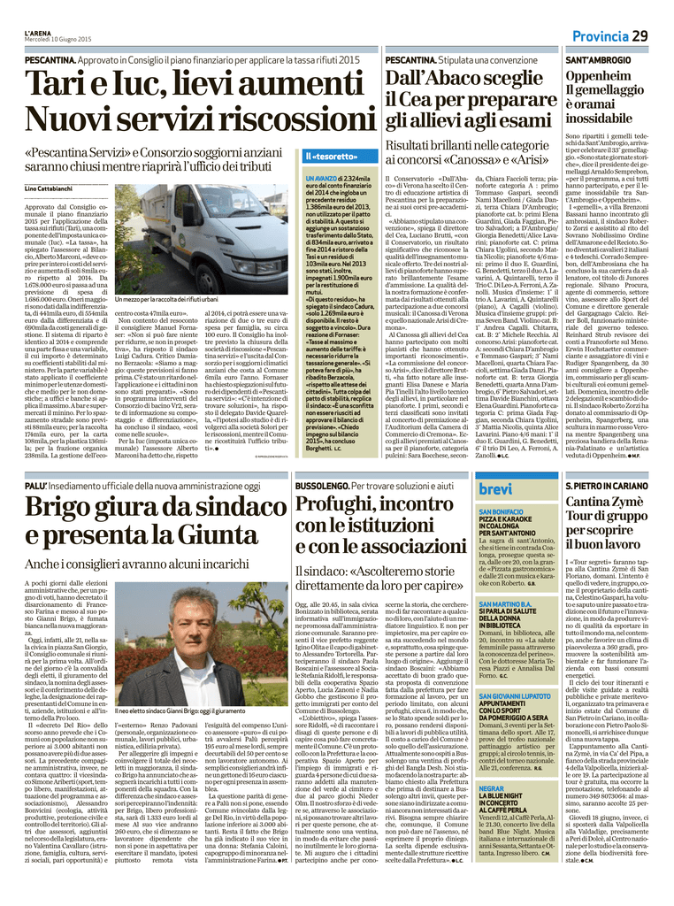 Brigo giura da sindaco (L`Arena 10.6.2015)