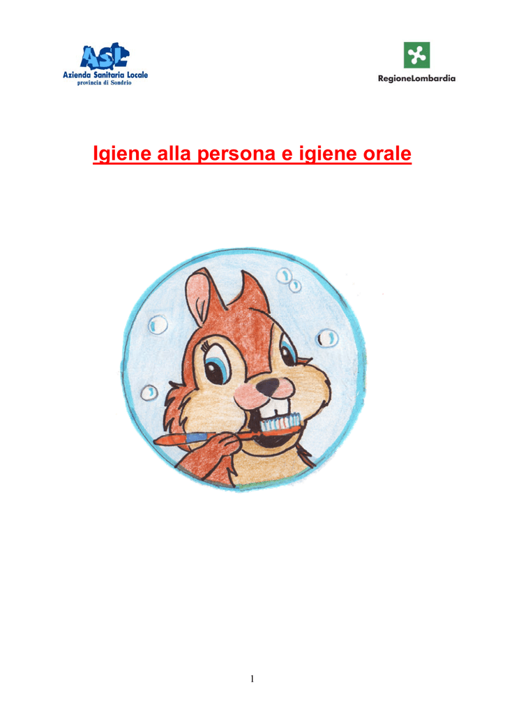 Igiene alla persona e igiene orale 1 INTRODUZIONE Il programma è costituito da un percorso didattico che fornisce tutte le informazioni necessarie per lo svolgimento del modulo ed è collegato ad azioni suggerite e a schede didattiche/esercizi contenuti nella cartella “Schede didattiche”. Nella cartella “Giochi” sono inserite alcune attività ludiche collegate al modulo. Nella cartella “Verifiche” sono suggeriti alcuni strumenti per la verifica degli obiettivi educativi. Nella cartella “Lavori delle scuole” sono riportati i lavori che è stato possibile inserire elaborati dagli alunni negli anni scolastici precedenti. Nella cartella “Dati epidemiologici” sono riportati alcuni dati sulla diffusione della carie in provincia di Sondrio 2 INDICE L’IGIENE PERSONALE UNITA’ DIDATTICA A: La salute un bene prezioso Capire l’importanza del concetto di salute e di malattia UNITA’ DIDATTICA B: L’igiene personale Cenni storici Cosa sono i germi Prevenire le infezioni Scheda di approfondimento (pediculosi) LA SALUTE ORALE I denti: quanti sono, tipologia e funzioni, struttura La carie: Come, dove e perché si forma La sedia della prevenzione 1) Pulizia dei denti: quando e come 3 2) Fluoro: come e perché 3) Controllo da dentista: quando e quanto 4) Alimentazione: cosa e quando TRAUMI DENTALI: Cosa fare in caso di…. 4 La salute …un tesoro prezioso Se proviamo a chiedere in giro “che cos’è la salute?” nella maggior parte dei casi si ottiene la risposta che essa è il contrario della malattia, ovvero nell’immaginario comune il concetto che prevale è che “si è sani quando non si è malati”. E’ importante far capire ai bambini, fin da piccoli, che la salute è un bene prezioso che deve essere tutelato e promosso. Per questo la parte iniziale dell’attività deve essere dedicata al concetto di salute, alla sua importanza e soprattutto a spiegare ai bambini quali sono le buone abitudini che possono concorrere al mantenimento di essa. La salute, intesa non solo come assenza di malattia, ma nel suo concetto più ampio, di benessere fisico, psichico e sociale, dipende molto spesso dalle nostre scelte e dal nostro stile di vita. Pertanto essa diventa un bene che va difeso giorno per giorno, attraverso delle semplici regole da seguire con costanza e continuità, regole e comportamenti che, se acquisiti fin da piccoli, potranno evitarci molti guai in futuro. E’ importante, allora, spiegare e far comprendere che spesso la salute dipende da NOI stessi. Per introdurre il concetto di “SALUTE” può essere utile ricorrere alla visione di una videocassetta, ad una storia, al racconto di un’esperienza, a come ci si sente quando si è malati, ad una fiaba, ad un gioco. Tra le varie attività, si suggerisce la lettura della fiaba “Lo scienziato e il tesoro” tratta dal libro “…E vissero sempre in salute e contenti”. Manuale di educazione alla salute con le favole per insegnanti e genitori di A. Pellai e P. Castelli (ed. F. Angeli/Le comete). Questa favola aiuta a comprendere che il livello del proprio benessere personale può crescere o diminuire in base ai comportamenti agiti. Al termine della fiaba o di altre attività è opportuno sviluppare una discussione tra i bambini, facendoli riflettere sui contenuti e sull’importanza degli stili di vita sani, in particolare lavarsi, alimentarsi in maniera equilibrata, fare esercizio fisico, non fumare. 5 LO SCIENZIATO E IL TESORO (Liberamente tratta da “…E vissero sempre in salute e contenti” di A. Pellai e P. Castelli). C’era una volta uno scienziato molto curioso. La sua passione era viaggiare in luoghi lontani e misteriosi, fare nuove esperienze e andare alla ricerca di nuove scoperte. Durante un viaggio in una terra lontana si trovò ad ascoltare una mamma che raccontava una storia ai suoi bambini. La mamma parlava di un’isola misteriosa, nascosta da qualche parte in cielo, che ogni bambino possiede. Secondo questa storia ogni bambino ha un’isola in cielo e la cosa meravigliosa è che si tratta di un’isola del tesoro. Tutti Voi, quindi, avete da qualche parte nel cielo la Vostra isola e il Vostro tesoro. Lo scienziato rimase molto meravigliato da questa storia e subito decise di voler fare un viaggio spaziale alla ricerca delle isole con il tesoro di tutti i bambini del mondo. La missione non era facile. Occorreva costruire un missile interstellare. Per molti mesi lo scienziato lavorò senza riposo nel suo laboratorio, finchè una mattina tutto fu pronto per la grande partenza. La rampa di lancio del missile venne sistemata nel parco della vicina scuola elementare e, la mattina seguente, lo scienziato partì per lo spazio mentre tutti i bambini della scuola lo salutavano dalle finestre gridandogli “Buon viaggio scienziato e torna presto con il nostro tesoro”. Lo scienziato viaggiò per giorni e giorni fra stelle, comete e pianeti sconosciuti, finchè una mattina…..dal finestrino del suo missile vide una grandissima distesa di tante piccole isole, ciascuna con un cartello che stava ad indicare il nome del bambino a cui apparteneva. Lo scienziato allora atterrò su una di queste isole e indovinate un pò cosa fece? Proprio così…incominciò a cercare il tesoro!! Scava qui, scava là un giorno trovò sotterrato un grande forziere. “Ecco finalmente il tesoro” pensò subito lo scienziato. Immediatamente portò alla luce il forziere e cominciò ad osservarlo. Sul coperchio lesse un nome:Luca: “guarda un po’ il nome del figlio del mio vicino di casa” pensò lo scienziato. Alzato il coperchio del forziere lo scienziato notò una cosa molto strana: dentro il forziere c’era una specie di luce ballerina, a volte si alzava e a volte si abbassava. Sembrava cioè che in alcuni momenti Luca diventasse più ricco e in alcuni momenti più povero di quel tesoro. “Come mai può succedere questo strano fenomeno? Che tesoro magico è mai quello che ho trovato?” si chiese lo scienziato e vol