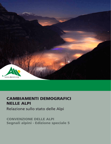 CAMBIAMENTI DEMOGRAFICI NELLE ALPI Relazione sullo stato delle Alpi CONVENZIONE DELLE ALPI Segnali alpini - Edizione speciale 5 IMPRINT Editore: Segretariato permanente della Convenzione delle Alpi www.alpconv.org [email protected] Sede: Herzog-Friedrich-Strasse 15 A-6020 Innsbruck Austria Sede distaccata: Viale Druso-Drususallee 1 I-39100 Bolzano-Bozen Italia Impaginazione: De Poli & Cometto - Belluno - Italia Stampa: Stampatori della Marca - Castelfranco Veneto - Italia Traduzioni: INTRALP Foto di copertina: T. Borghetti - Archivio del Servizio Foreste e Fauna della Provincia Autonoma di Trento © Segretariato permanente della Convenzione delle Alpi, 2015 ISBN 9788897500162 CAMBIAMENTI DEMOGRAFICI NELLE ALPI RELAZIONE SULLO STATO DELLE ALPI CONVENZIONE DELLE ALPI SEGNALI ALPINI - EDIZIONE SPECIALE 5 2 CONVENZIONE DELLE ALPI | CAMBIAMENTI DEMOGRAFICI NELLE ALPI La presente relazione è stata approvata dalla XIII Conferenza delle Alpi riunitasi a Torino il 21 novembre 2014. La preparazione della relazione è stata coordinata dalla Presidenza italiana del gruppo di esperti ad hoc, in cooperazione con il Segretariato permanente della Convenzione delle Alpi. Il testo è stato redatto dalla Presidenza italiana del gruppo di esperti ad hoc e dai suoi membri, con il coordinamento del Segretariato permanente. La relazione contiene diverse analisi tematiche i cui autori sono menzionati direttamente nel testo. Vari progetti di Cooperazione Territoriale Europea hanno contribuito alla preparazione del testo e alla raccolta delle buone pratiche; questi progetti sono riportati in dettaglio nei ringraziamenti che seguono. Le cartografie sono state realizzate dall’Istituto per lo sviluppo regionale e il management del territorio dell’EURAC - Accademia Europea di Bolzano. La relazione si basa sui risultati preliminari del Gruppo di lavoro della Convenzione delle Alpi su Demografia e occupazione. Coordinamento del Gruppo di esperti ad hoc Presidenza ISTAT, Istituto nazionale di statistica italiano (Saverio Gazzelloni) Segretariato permanente della Convenzione delle Alpi (Simona Vrevc, Marianna Elmi) Membri del Gruppo di esperti ad hoc Austria Umweltbundesamt (Andreas Bartel) (Agenzia austriaca per l’ambiente, l’uso del suolo e la biosicurezza) Statistik Austria (Peter A. Rumpolt) (Istituto nazionale di statistica austriaco) Francia Direction régionale de l’INSEE Rhône-Alpes, Lyon (Jerome Harnois, Pascal Oger) (Direzione regionale dell’INSEE Rodano-Alpi, Lione) Italia ISTAT, Istituto nazionale di statistica italiano (Mauro Albani, Giorgia Capacci, Angela Ferruzza, Antonella Guarneri) Eurac Research, Segreteria tecnico-scientifica della Presidenza italiana della Convenzione delle Alpi (Andrea Bianchini, Raffaele Vergnani) European School of Economics, Segreteria tecnico-scientifica della Presidenza italiana della Convenzione delle Alpi (Luca Cetara) Liechtenstein Amt für Umweltschutz (Hanspeter Eberle) (Ufficio per la tutela dell’ambiente) CONVENZIONE DELLE ALPI | CAMBIAMENTI DEMOGRAFICI NELLE ALPI 3 Slovenia Ministrstvo za okolje in prostor (Blanka Bartol) (Ministero per l’ambiente e la pianificazione territoriale) Statistični urad Republike Slovenije (Barica Razpotnik, Mojca Merc, Simona Klasinc) (Ufficio Statistico della Repubblica di Slovenia) Osservatori del gruppo di esperti ad hoc CIPRA Italia – Associazione Dislivelli (Federica Corrado) ISCAR e Institut für Interdisziplinäre Gebirgsforschung (IGF) Österreichische Akademie der Wissenschaften (ÖAW) (Oliver Bender) (Comitato scientifico internazionale sulla ricerca alpina e Istituto per la ricerca interdisciplinare sulle aree montane dell’Accademia austriaca delle scienze) Altre istituzioni e persone che hanno contribuito alla Relazione Per la stesura della relazione, gli autori hanno fatto ricorso a dati, alla relativa elaborazione e a buone pratiche. Uno speciale ringraziamento va a: I Focal Point della Convenzione delle Alpi ISTAT, Istituto nazionale di statistica italiano (Alessandra Battisti, Alessandra Burgio, Alessandro Cimbelli, Carlo Lucarelli, Matteo Mazziotta, Laura Murianni, Giulia Milan, Stefano Tersigni, Enrico Tucci) Statistik Austria (Erika Baldaszti, Gernot Katzlberger, Alexander Wisbauer) (Istituto nazionale di statistica austriaco) Accademia Europea di Bolzano (EURAC research) – Istituto per lo sviluppo regionale e il management del territorio (Elisa Ravazzoli, Anna Scuttari, Thomas Streifeneder) Lo staff della Presidenza italiana della Convenzione delle Alpi (Martina Lauretti, Claudia Ricci) Segretariato permanente della Convenzione delle Alpi (Vera Bornemann, Gilles Chomat, Taja Ferjančič Lakota, Giulia Gaggia, Charlène Lagarde, Gregor Lanzinger, Pauline Kaltenbach) CIPRA Italia – Associazione Dislivelli (Roberto Canu, Erwin Durbiano) Università di Torino (Pier Paolo Viazzo) Università di Parma (Fabio Sforzi) AEA, Agenzia europea dell’ambiente La rete di Progetti di Cooperazione Territoriale Europea: ADAPT2DC (Nuria Mignone) ALIAS (Natalia Allegretti) CAPACITIES (Guido Baschenis, Ermenegildo Del Degan, Janez Nared, Paolo Zeppetella) COMUNIS (Miriam Laura Weiß) DEMOCHANGE (Nuria Mignone, Emanuela Dutto, Erich Giordano) DIAMONT (Caroline Pecher, Janez Nared) HELPS (Matteo Apuzzo) NATHCARE (Natalia Allegretti) OPEN-ALPS (Antonio Ballarin Denti, Chiara Gandini) PADIMA (Maria Grazia Pedrana, Massimo Bardea) PUSEMOR (Massimo Bardea) RE-TURN (Nuria Mignone) 4 CONVENZIONE DELLE ALPI | CAMBIAMENTI DEMOGRAFICI NELLE ALPI Uno speciale ringraziamento per il contributo attivo apportato dal Gruppo di lavoro Demografia e occupazione Presidenza Università di Torino (Pier Paolo Viazzo) Segretariato permanente della Convenzione delle Alpi (Wolfger Mayrhofer) Austria Statistik Austria (Stephan Marik-Lebeck) (Istituto nazionale di statistica) Germania STMWIVT – Bayerisches Staatsministerium für Wirtschaft, Infrastruktur, Verkehr und Technologie (Reinhold Koch) (Ministero bavarese per l’economia, le infras
