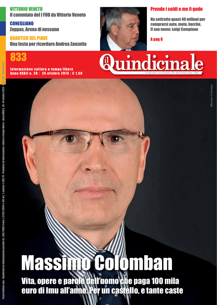 VITTORIO VENETO Il commiato del I FOD da Vittorio Veneto CONEGLIANO Zoppas, Arena di nessuno Ha sottratto quasi 40 milioni per comprarsi auto, moto, barche. Il suo nome: Luigi Compiano A pag 8 833 Informazione cultura e tempo libero Anno XXXII n. 20 | 24 ottobre 2013 | € 1,90 Fondato da Dario De Bastiani nel 1982 Massimo Colomban Poste italiane spa - Spedizione in abbonamento postale D.L. 353/2003 (conv. L.27/02/2004 n. 46) art. 1, comma 1, CNS TV - Periodico di informazione, cultura e tempo libero - Anno XXXII n. 20 -24 ottobre 2013 - Euro 1,90 - Contiene I.P. QUARTIER DEL PIAVE Una festa per ricordare Andrea Zanzotto Prendo i soldi e me li godo Massimo Colomban Vita, opere e parole dell’uomo che paga 100 mila euro di Imu all’anno. Per un castello, e tante caste PRIMO PIANO La laurea ad honorem? Appena ho un po’ di tempo, vado a ritirarla A tu per tu (e poltrona anti-stress) con Massimo Colomban, il fondatore di Permasteelisa, il proprietario di Castelbrando, l’unico console onorario d’Australia in Italia e l’unico italiano che sia mai entrato nel Cda della Facoltà di architettura di Harvard. L’imprenditore che ha avuto cinque mila dipendenti e che (dice) non ne ha mai licenziato uno. L’amico di Carlo/ Charles (il principe di Galles), di Camilla Parker Bowles (duchessa di Cornovaglia), e di Jeremy Irons (“appena posso devo andare a trovarlo, nel suo castello di St. Colomban”) di Emanuela Da Ros Q uando ci incontriamo per la chiacchierata/intervista al Quaternario di San Vendemiano (l’edificio con la palla a specchi che si affaccia sulla Pontebbana), sia io che Massimo Colomban siamo un po’ prevenuti (lui più di me). Lui (prima di leggermi) mi ha catalogata come giornalista-di-sinistra (e sia la categoria, che il lato ideologico in cui mi ha ficcata gli rompono un po’). xxxx Io invece penso che sto per intervistare il super-manager con la camicia griffata e la giacca inesorabilmente-moltoprevedibilmente blu; il riccone con la Maserati che luccica fuori dall’androne dell’azienda, la 24ore Louis Vuitton sulla scrivania di vetro, e la segreteria personale che mi dice: “Attenda un attimo, per favore. Il dottor Colomban la riceverà subito”. In confidenza: la prevenzione si insinua persino nel mio guardaroba e quindi, per intervistare il supermanager, mi tolgo il giubbotto di pelle e opto per uno spolverino nero bon ton: sia mai che “giubbotto di pelle” – nelle stanze dei bottoni - voglia dire “militante da qualche parte”. Ma poi succede che, al Quaternario, non trovo nessuna Maserati (Colomban usa un fuoristrada – diesel, precisa -, la cui marca non dice nulla né a me, né a lui); e non trovo nessuna segretaria a dirmi Attenda un attimo, eccetera. Non trovo nemmeno una targhetta con scritto “dottor Colomban”, perché Colomban, dopo quattro esami ad Architettura a Venezia, ha lasciato la facoltà. E non si è laureato mai. Anche se poi ha insegnato ad Harvard, a Boston, al Politecnico Leonardo di Milano. Anche se l’università di Ferrara lo ha insignito di una laurea ad Silvia, Laura, Giulia e Anna con papà Massimo Giovedì 24 ottobre 2013 | 3 Il Quindicinale PRIMO PIANO honorem, che lui non è ancora andato a ritirare (se siete curiosi di saperne di più, restate con me). Quando raggiungo l’ufficio di Massimo Colomban trovo la porta aperta e lui, seduto davanti al computer, con un maglioncino (ebbene sì) blu, mi dice: Entra pure, siediti dove vuoi. Lo prendo alla lettera. Mi sfilo persino lo spolverino nero bon ton, che mica fa così freddo. E scelgo di intervistarlo dalla poltrona massaggio-anti-stress che sta in un angolo del suo ufficio (porte aperte sempre), e sono così a mio agio mentre parlo con lui (mi correggo: mentre parla soprattutto lui, perché Colomban - se ci si mette - è un Massimo Colomban con la moglie Ivana Casagrande torrente di parole) che a un certo punto ho persino la tentazione di togliermi le scarpe (tranquillizzatevi: non l’ho fatto). Chi è Massimo Colomban Prima di riferire un po’ di chiacchiere, devo mettervi al corrente di chi ho intervistato (oltre la poltrona). Massimo Colomban è un ragazzo (be’, ragazzo: ormai ha 64 anni, anche se li porta strabene) di Santa Lucia di Piave. Il Quindicinale 4 | Giovedì 24 ottobre 2013 Penultimo di cinque figli (due maschi e tre femmine), Massimo Colomban ha passato l’infanzia nel laboratorio del padre Antonio, che lavorava il legno e il ferro battuto. A otto anni si divertiva a stare al tornio, o a “girare la fucina”, a emulare la maestria del padre (per cui ha un affetto/venerazione) su materiali nobili, ma poveri; difficilmente malleabili, ma indispensabili. A 14 anni ha smesso di andare a scuola, perché nella sua famiglia il lavoro era la cosa più importante. E’ stato assunto in una fabbrica di infissi, e ha iniziato a fare l’operaio. Ma poi ha pensato che avrebbe potuto studiare mentre si guadagnava da vivere: si è iscritto all’istituto per geometri e ha preso il diploma. A 23 anni, ha realizzato che aveva bisogno di fare di più. Di far leva sul desiderio di creazione, di innovazione, di cambiamento che sentiva crescere in sé. Si è licenziato e si è messo in proprio. Che è successo? che Massimo Colomban ha fondato la Permasteelisa: con sei soci, in 20 anni, ha creato un’azienda leader nel mondo nelle architetture monumentali. In vent’anni, dal nulla, ha costruito un’azienda da un miliardo di euro di fatturato annuo, con 5 mila dipendenti, oltre 40 società in quattro continenti e quotazioni in borsa a Milano e a Singapore. In trent’anni, Colomban ha collezionato 8 mila ore di volo, durante le quale ha stilato un numero incredibile di progetti classificati come “home fly, numero progressivo”. Perché se Bill Gates oggi è un’icona per gli americani, Massimo Colomban (che adora Bill Gates, che l’ha avuto tra gli uditori di una sua prolusione a Boston), non ha – alle spalle, sulla pelle – una storia poi tanto lontana 
