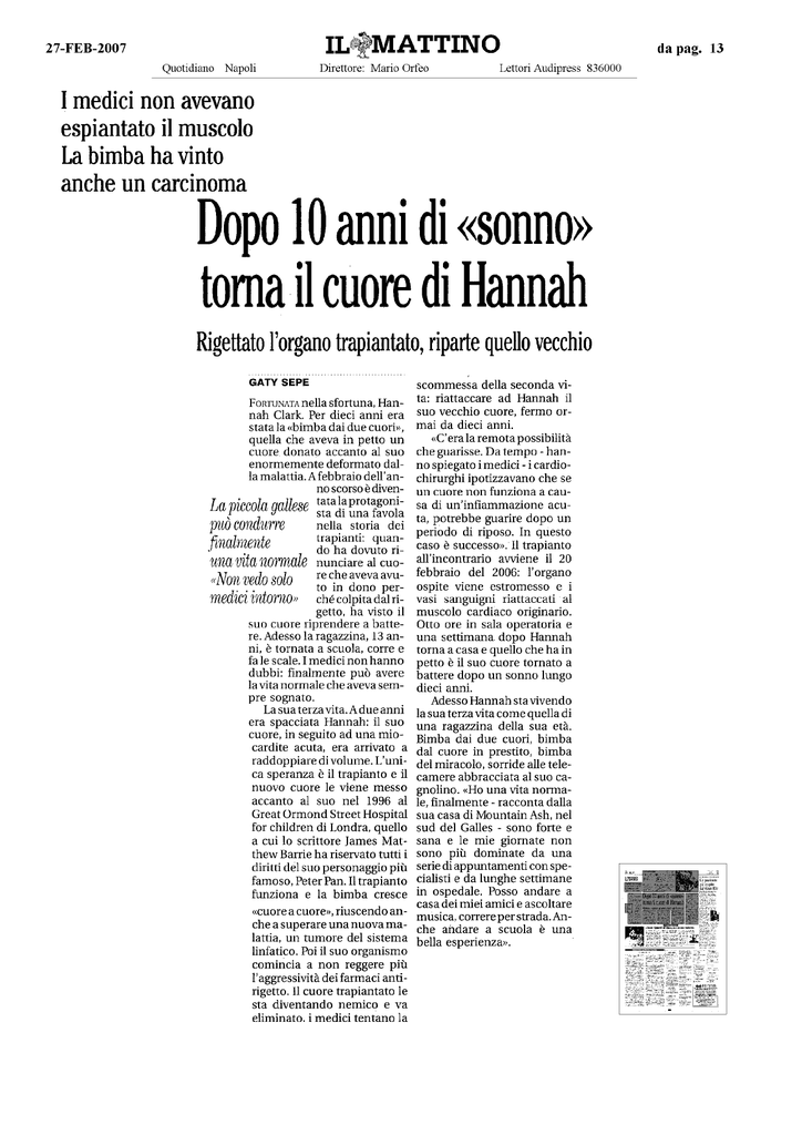 Dopo 10 anni di "sonno" torna il cuore di Hannah