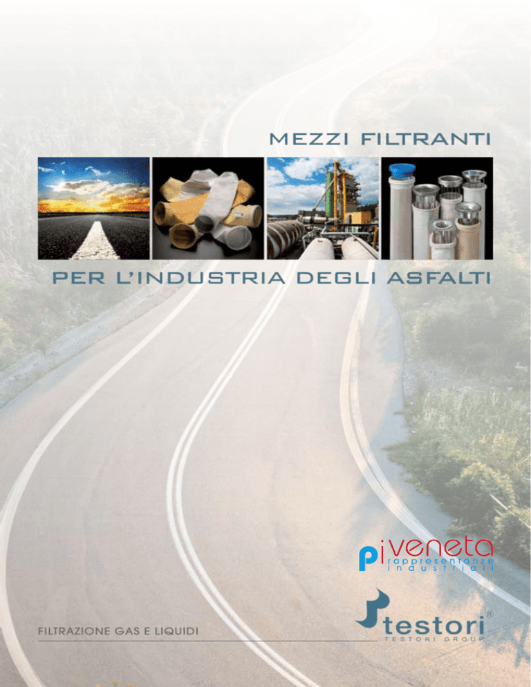 Introduzione La rete stradale, per estensione e per qualità è un importante indicatore del grado di sviluppo di un paese; altrettanto importante indice è la cura posta a difesa dell’ambiente durante la costruzione e la manutenzione delle strade. La produzione del manto di asfalto è un processo con rilevante impatto ambientale che richiede un controllo costante dei fumi che si generano durante la preparazione del conglomerato bituminoso. Testori produce un’intera gamma di MEZZI lLTRANTI SPECIlCAMENTE SVILUPPATI PERLADEPOLVERIZZAZIONEDEIFUMIGENERATINELLAPRODUZIONEDIASFALTINEIVARI TIPIDIIMPIANTIlSSICONTINUIDISCONTINUIMOBILICONTROCORRENTE Manica filtrante Strada 2 Manica filtrante a due canali Filtro impianto asfalti PORTFOLIO PRODOTTI I mezzi filtranti proposti per la fornitura di MANICHEESACCHI noscenza dei filtri e delle condizioni operative dell’impianto, coprono tutte le esigenze delle varie tipologie d’impianto ci consentono di scegliere la natura della fibra, il peso del soprattutto in riferimento alle temperature dei gas filtrati ed feltro agugliato, la permeabilità all’aria e l’eventuale tratta- alle loro particolari composizioni. mento chimico per ottenere un prodotto ottimale. La nostra storica presenza nel settore e l’approfondita co- Dettagli tecnici (nostri principali prodotti): 0ESOGM2 0ERMEABILITÌ ALLARIA 0A LDM2 sMIN 400 200 480 170 400 170 X 501 SA - X 501 RH 480 150 X 406 SA - X 406 RHS 400 200 500 120 - 150 525 140 - 170 4IPOFELTRO X 402 SA - X 402 RH X 502 SA - X 502 RH &IBRA Du pont™ Nomex® X 401 SA - X 401 RH Meta aramide X 506 SA - X 506 RHS X 506 NOVATES D 525 SA - D 525 KL Mista asfalti Acrilica Omopolimero 4EMPERATURA MASSIMA DIESERCIZIO 180°C 220°C (picchi) 180°C 220°C (picchi) 140°C 160°C (picchi) < 130°C Sono disponibili altri pesi. Tutti i dati non sono vincolanti e possono variare Feltro metaramidico Maniche filtranti 3 Le soluzioni offerte da Testori, comprendono alcuniTRATTAMENTISPECIALI (Rhytes, Novates e Kleentes) al fine di ottenere massima efficienza, minima perdita di carico ed adeguate permeabilità e temperature di esercizio. Si tratta di trattamenti idro/oleo repellenti e/o di trattamenti che rendono la superficie del feltro particolarmente liscia. Le maniche e i sacchi filtranti vengono progettati ed eseguiti secondo precise procedure di confezione; la precisione delle misure, la qualità delle termosaldature e delle cuciture, l’impiego di materiali accessori rigorosamente selezionati sono alla base delle buone performances: bassi valori di emissioni, ridotti consumi energetici, lunga durata. Il ciclo di PRODUZIONE delle maniche filtranti VERTICALMENTE INTEGRATO, dalla fibra in fiocco al manufatto finito, attraverso processi di cardatura, agugliatura, finissaggio e confezione assicura il massimo controllo sulla qualità dei prodotti che garantiscono le performances più elevate in termini di efficienza, risparmio energetico e durata. Impianto produttivo asfalti Impianto produttivo asfalti (cortesia di Bernardi impianti) 4 ACCESSORI, PARTI DI RICAMBIO & SERVIZI Il Gruppo Testori offre la sua competenza ed un team di I nostri laboratori interni hanno CAPACITÌESTRUMENTAZIONE esperti (gli interventi sono organizzati attraverso il personale ANALITICA che permettono di ottimizzare la manutenzione e di Tessitura Euganea divisione Filter Tex e di TTL France) la prestazione dei filtri: per: s Installazione e sostituzione di maniche filtranti s -ANUTENZIONEEDISPEZIONE dell’impianto s 4ESTDITENUTA (con polvere fluorescente inerte) s 4ESTCHIMICIe di identificazione della natura della fibra e delle polveri filtrate s 4EST DINAMOMETRICI per valutare le proprietà meccaniche dei mezzi filtranti s 4ESTporometrici e granulometrici Forniamo accessori e parti di ricambio al fine di garantire il corretto funzionamento del sistema filtrante: s Cestelli per maniche: in acciaio al carbonio o in acciaio inossidabile, con zincatura, verniciati in cataforesi o con altri trattamenti che prevengono la corrosione. I nostri cestelli prevedono un diverso numero di anelli, fili longitu- s 4ESTDIPERMEABILITÌe di efficienza di filtrazione (VDI) s -ISURADELLEPROPRIETÌANTISTATICHE s -ICROSCOPIOTTICIEDELETTRONICI s !NALISISUMANICHEEDALTRIMANUFATTIUSATI dinali di vari spessori e con saldature idonee per un corretto montaggio delle maniche. La realizzazione avviene in pezzi unici o in due o più parti da montare in loco s 4UBI6ENTURI: disponibili in acciaio dolce, alluminio pressofuso e nylon s 0OLVERIMETRI ELETTRODINAMICI per filtri a maniche (certificati TUV EN 15859): per consentire un monitoraggio continuo del flusso e della concentrazione delle polveri. I costi di manutenzione vengono ridotti significativamente Maniche e cestelli Montaggio maniche 5 ITALIA FRANCIA U.A.E. U.S.A. Testori S.p.A. Group Headquarters Largo A. Testori, 5 20026 Novate Milanese (MI) Italia Tel. +39 02 3523 1 Via Venezia, 59/8 35131 Padova (PD) Tel. 049 8074322 Fax. 049 8072311 [email protected] Fax +39 02 3523 230 [email protected] www.piveneta.it www.testori.it Tessitura Euganea s.r.l. Via dell’industria - VI Strada 1 35023 Bagnoli di Sopra (PD) - Italia Tel. +39 0495 380 755 Fax +39 0495 380 770 [email protected] Briefing srl - Busto Arsizio VA Per i produttori di asfalto in Italia contattare: