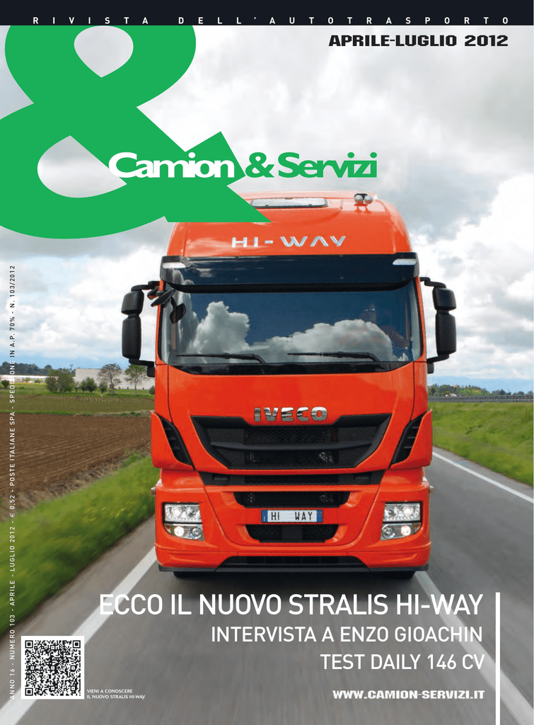 A N N O 1 6 - N U M E R O 1 0 3 - A P R I L E - L U G L I O 2 0 1 2 - € 0 , 5 2 - P O S T E I TA L I A N E S PA - S P E D I Z I O N E I N A . P. 7 0 % - N . 1 0 3 / 2 0 1 2 R I V I S T A VIENI A CONOSCERE IL NUOVO STRALIS HI-WAY D E L L ’ A U T O T R A S P O R T ECCO IL NUOVO STRALIS HI-WAY INTERVISTA A ENZO GIOACHIN TEST DAILY 146 CV O APRILE-LUGLIO 2012 sommarioAPRILE-LUGLIO2012 prodotto focus eventi finance 4 8 14 20 Debutta il Nuovo Stralis Hi-Way Intervista a Enzo Gioachin Joint venture col turbo I crediti diventano camion Presentato al FIV il pesante stradale che riduce i costi d’esercizio Perché il Nuovo Stralis Hi-Way è un campione di produttività Al salone di Pechino presentate le ultime novità di Iveco per il mercato cinese Intervista a Monica Bertolino, Amministratore Delegato di Iveco Finanziaria 12 Cursor Euro VI: urea sì, ma senza ricircolo 36 Intervista a 24 Gli Azzurri Domenico Nastasi, viaggiano sul Centro Usato Magelys Pro Iveco di Piacenza 32 Emergenza terremoto: Fiat Industrial scende in campo 16 Test su strada del Daily 146 Cv Rubriche 34 Iveco Parts&Services 40 Protagonisti Tagliabue Tracem Corti 46 News DIRETTORE RESPONSABILE MAURIZIO PIGNATA DIRETTORE EDITORIALE EMANUELA DE VITA COMITATO DI REDAZIONE GIORGIO GARRONE (REDAZIONE), MONICA BERTOLINO, ANDREA BUCCI, EMANUELA DE VITA, MARCO MONACELLI, MAURIZIO PIGNATA, SIMONA RICHINO COLLABORATORI ANDREA ALPIGNANO, GIUSEPPE BELLETTI, MARCO CAVALLI, ELISA FONTANA, CARLA FRANCONI, MARIA VITTORIA LOI, PIERLUIGI LUCCHINI, DOMENICO NASTASI, ALESSANDRO OITANA, GIUSEPPE PESCE, MARCELLO ZANELLA, FRANCO ZORZETTO EDITORE SATIZ SRL, VIA VITTIME DI PIAZZA DELLA LOGGIA, 25, 10024 MONCALIERI (TO) REDAZIONE GIORGIO GARRONE, VIA TRAIANO 10, 20149 MILANO, EMAIL [email protected] STAMPA SATIZ SRL – MONCALIERI (TO) REGISTRAZIONE TRIB. DI TORINO N. 5446 DEL 10/11/2000. È VIETATA LA RIPRODUZIONE ANCHE PARZIALE DI QUANTO PUBBLICATO SENZA AUTORIZZAZIONE. &2 NUMERO 103 APRILE-LUGLIO 2012 editoriale n un momento difficile per l’economia italiana, come quello attuale, Camion & Servizi è più che mai vicino, con tutte le informazioni sulle novità e le iniziative di Iveco, alle aziende di trasporto, ai dealer e alle officine della rete assistenziale. Questo è il primo numero del giornale senza Silvia Becchelli, che ne è stata il direttore storico e l’animatrice. Continueremo nel solco da lei tracciato, con lo stesso impegno e rigore, a comunicare ai lettori ciò che accade nel ‘mondo’ Iveco. A cominciare dal lancio dello Stralis Hi-Way, avvenuto all’inizio di luglio al Fiat Industrial Village di Torino. L’ultima generazione di veicoli della gamma heavy duty, cui è dedicato il servizio d’apertura, ha richiesto un investimento complessivo di oltre 300 milioni di euro. Il Nuovo Stralis propone soluzioni innovative per trasporto su gomma, in un’ottica di riduzione dei costi totali d’esercizio dei veicoli. Fattore, questo, di fondamentale importanza per la salute dei bilanci delle aziende, in una fase di grande incertezza economica. E proprio il contenimento dei costi chilometrici è uno degli argomenti salienti toccati nell’intervista a Enzo Gioachin, Iveco Senior Vice President Sales & Marketing che spiega perché lo Stralis Hi-Way, con le sue soluzioni tecnologiche d’avanguardia e con i suoi pacchetti di servizi, riesce a ridurre fino al 4% il Total Cost of Ownership. Iveco non si limita, però, a costruire camion hi-tech. Si pone, infatti, anche il problema di offrire alle aziende italiane in crisi di liquidità le soluzioni su misura per acquistare beni strumentali che producono reddito. Con l’iniziativa ‘Trasformiamoli in un nuovo Iveco’, Iveco Finanziaria acquisisce i crediti delle imprese verso le Pubbliche amministrazioni, mettendo a disposizione le risorse economiche per acquistare in proprietà nuovi camion o per stipulare contratti di leasing. Le finalità del progetto e le sue modalità d’attuazione sono spiegate nell’intervista a Monica Bertolino, Amministratore delegato di Iveco Finanziaria. Nel comparto dei leggeri, Camion & Servizi propone in anteprima il test su strada del Nuovo Daily 35S15, equipaggiato con il Multijet II di 2,3 litri da 146 Cv e con il sistema Start&Stop di arresto e ripartenza automatica del motore. Con questo dispositivo e con il Multijet di seconda generazione i consumi di gasolio si riducono fino al 10% sui percorsi urbani. La cultura industriale non è fatta solo di prodotti e servizi. Significa anche solidarietà attiva nel momento del bisogno, come ha fatto Fiat Industrial per aiutare i terremotati dell’Emilia. Sono scesi in campo i tecnici di Iveco-Magirus, che hanno curato la manutenzione dei veicoli dei Vigili del Fuoco sottoposti a un superlavoro per le verifiche di sicurezza degli edifici, e i mezzi movimento terra di CNH, che si sono occupati della rimozione della macerie e della preparazione dei campi d’accoglimento degli sfollati. Ma le notizie sulle tante realtà della galassia Iveco contenute in questo numero del giornale non finiscono qui. Le scoprirete solo leggendoci. I Emanuela De Vita NUMERO 103 APRILE-LUGLIO 2012 &3 prodotto<NUOVO STRALIS HI-WAY HI-TECH DENTRO E FUORI Il nuovo pesante stradale di Iveco debutta con una cabina più aerodinamica dal design accattivante e tante innovazioni tecniche sottopelle per aumentare il comfort del conducente e ridurre i consumi di gasolio e i costi d’esercizio &4 l Nuovo Stralis Hi-Way nasce nel nome dell’Hi-Tech e del contenimento dei costi d’esercizio, fattore chiave per la salute dei bilanci delle aziende di trasporto. Sono Hi-Tech le motorizzazioni Euro VI, basate sull’esclusiva tecnologia High-Efficiency SCR di FPT Industrial, le dotazioni di sicurezza e i sistemi telematici avanzati, che permettono anche la valutazione in tempo reale dello stile di guida del conducente. Il Nuovo Stralis Hi-Way, interamente realizzato negli stabilimenti Iveco di Madrid, che hanno recentemente ottenuto la med