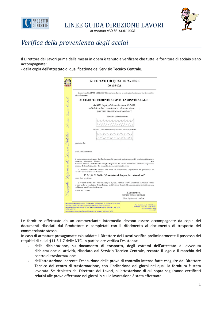 LINEE GUIDA DIREZIONE LAVORI Verifica della provenienza degli