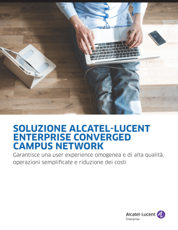 SOLUZIONE ALCATEL-LUCENT ENTERPRISE CONVERGED CAMPUS NETWORK Garantisce una user experience omogenea e di alta qualità, operazioni semplificate e riduzione dei costi LE SFIDE PER DIVENTARE UN'ORGANIZZAZIONE DI NUOVA GENERAZIONE La tecnologia è essenziale per garantire l'efficienza delle aziende e consentirne la differenziazione in un mercato dinamico ed esigente. L'infrastruttura di rete è la spina dorsale che, se realizzata nel modo corretto, consente di adottare con successo questa tecnologia. Le aziende adottano le principali tendenze presenti sul mercato, come ad esempio il supporto per dispositivi di nuova generazione, fenomeni quali mobility e BYOD (Bring-Your-Own-Device) e il passaggio al cloud. Queste tendenze richiedono nuove prestazioni della rete e aumentano la complessità delle infrastrutture di rete esistenti. La rapida crescita delle applicazioni real-time, come ad esempio VoIP (Voice over Internet Protocol), video e suite di collaborazione, nonché la loro importanza per le organizzazioni, spingono le reti legacy ai limiti con richieste sempre crescenti di larghezza di banda e di potenziamento della Qualità del Servizio (QoS, Quality of Service). Oltre al fatto che un numero elevato di nuove applicazioni, sia aziendali che personali, si contende la larghezza di banda disponibile. Diventa quindi importante avere piena visibilità delle applicazioni che attraversano la rete e fornire meccanismi per assegnare la priorità alle applicazioni business-critical. Molti nuovi dispositivi, quali smartphone, videocamere IP, smart board e telefoni IP di nuova generazione e ricchi di funzionalità innovative, necessitano di una maggiore larghezza di banda che supera i limiti delle reti attuali. Contemporaneamente cresce il numero dei dipendenti che utilizzano i propri smartphone o tablet e che hanno necessità di connettersi alle reti aziendali. Tutto ciò, abbinato all'esigenza di supportare la mobility, aumenta i rischi in termini di sicurezza, rende impossibile prevedere il consumo della larghezza di banda e rende inefficace l'abituale provisioning statico. Poiché il reparto IT non è più in grado di controllare i dispositivi di tutti gli utenti, qualsiasi intervento per migliorare la fornitura di applicazioni deve essere effettuato a livello di rete, preferibilmente in modo automatico. Al giorno d'oggi la virtualizzazione non è più confinata al Data Center, ma si estende su tutta la rete, fino al livello del desktop. Grazie a desktop virtualizzati l'attività di elaborazione avviene nel Data Center anziché sul desktop, rendendo il flusso di traffico per la visualizzazione delle informazioni più sensibile ai ritardi e alle interruzioni della rete. Figura 1: le attuali tendenze principali costituiscono una sfida per l'infrastruttura di rete Dispositivi e BYOD Mobility INFRASTRUTTURA DI RETE Applicazioni e cloud SOLUZIONE CONVERGED CAMPUS NETWORK ALCATEL-LUCENT ENTERPRISE 2 È essenziale disporre di una rete convergente concepita in ogni suo aspetto per soddisfare in modo efficace le esigenze di nuove applicazioni e dispositivi, di mobility e virtualizzazione. Per le aziende è giunto il momento di riconsiderare la strategia adottata per poter supportare l'aumento della larghezza di banda, un maggiore utilizzo di WLAN (Wireless Local Area Network) e migliori prestazioni complessive della rete. Oltre a questo, è necessario che le imprese si dotino di un'infrastruttura di rete con un'architettura semplificata in grado di ottimizzare l'utilizzo delle risorse, di offrire una Qualità dell'esperienza (QoE, Quality of Experience) coerente per utenti cablati e wireless e di semplificare la gestione complessiva. ALCATEL-LUCENT ENTERPRISE APPLICATION FLUENT CONVERGED CAMPUS NETWORK INTRODUZIONE TECNOLOGIE CHIAVE La strategia Application Fluent Network Alcatel-Lucent Enterprise UNIFIED ACCESS: ESPERIENZA PERFETTA CON ACCESSO CABLATO O WIRELESS risponde alle esigenze delle aziende moderne e la soluzione per reti campus convergenti si basa su questa strategia. In un ambiente competitivo come quello attuale è essenziale La strategia Application Fluent Network si basa su che i dipendenti siano in grado di condividere le informazioni un'architettura resiliente con controlli automatici in grado di e di restare connessi con colleghi e clienti in qualsiasi momento mettere a punto dinamicamente le prestazioni della rete e di e da qualsiasi luogo. eseguire operazioni semplificate che riducono la complessità della gestione. Application Fluent Network è in grado di rilevare utenti, dispositivi e applicazioni e utilizza tali informazioni per apportare regolazioni automatiche e, di conseguenza, migliorare la user experience. L'implementazione della soluzione Alcatel-Lucent Enterprise converged campus network con Unified Access consente ai dipendenti di sfruttare appieno i vantaggi della mobility. Gli utenti usufruiscono dello stesso livello di fruibilità di applicazioni di alta qualità, degli stessi criteri e degli stessi La soluzione Alcatel-Lucent Enterprise Application Fluent servizi di rete, sia utilizzando una connessione cablata che Converged Campus Network è basata su un set completo wireless. Gli Access Point dotati della tecnologia IEEE 802.11ac di software e apparecchiature di rete all'avanguardia. Le più recente rendono le prestazioni delle reti wireless quasi apparecchiature di rete includono switch di accesso, switch core, paragonabili a quelle delle reti cablate e consentono le velocità router WAN (Wide Area Network) e server di gestione. In base necessarie per le applicazioni real-time. alla nostra strategia mirata a soddisfare le esigenze dell'impresa moderna, sono state introdotte tre tecnologie chiave per creare la migliore soluzione del settore: Un approccio Unified Access semplifica inoltre le attività dei team IT, che possono offrire policy comuni sia per l'accesso cablato che wireless, con lo stesso livello di sicurezza. • Unified Access Una singola infrastruttura