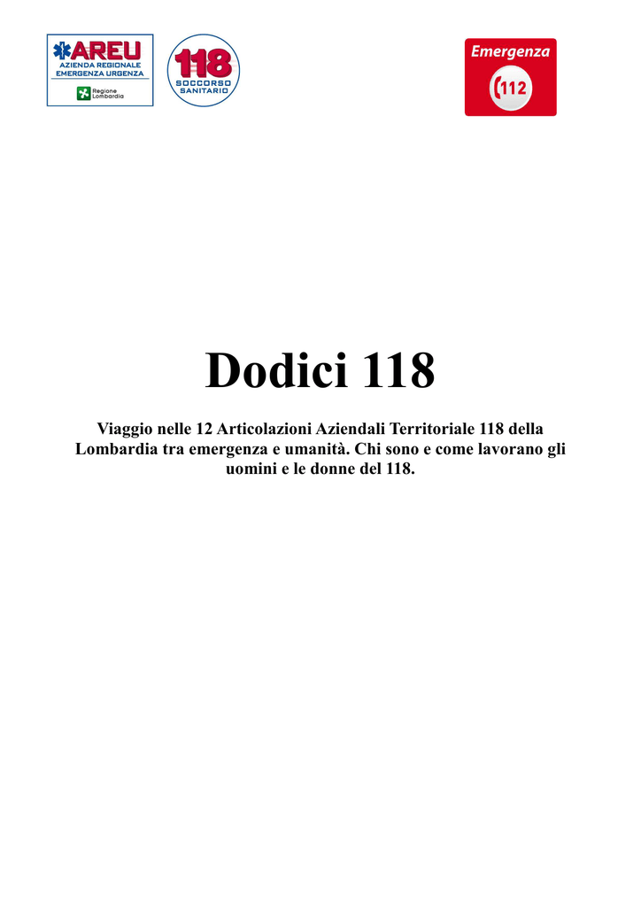 Dodici 118 Viaggio nelle 12 Articolazioni Aziendali Territoriale 118 della Lombardia tra emergenza e umanità. Chi sono e come lavorano gli uomini e le donne del 118. LECCO Giorgio, Matteo, Gloria Giorgio: “Anziani e persone deboli, possiamo fare di più?” Il dottor Giorgio Falbo è uno che se non può dire quello che pensa (e succede molto raramente) assume l'espressione di chi sta trattenendo il fiato in attesa di scoppiare. Ha un'onestà intellettuale apprezzabile, talvolta accompagnata da una vena polemica su quello che succede nel mondo in generale e nell’ambito del 118 in particolare. E' con lui che iniziamo la pagina del 118 di Lecco una mattinata di inizio aprile. La giornata si annuncia tranquilla: due chiamate dirottate alla Guardia medica, un dolore toracico, poi un anziano solo. E’ proprio Giorgio a gestire la chiamata: “Gli anziani sono i più fragili – spiega - e hanno spesso bisogno solo di ascolto, come si fa a non dargli retta?” Pausa. E capisci che avrebbe voglia di dire di più sull’argomento “fragilità”. “Ma sì, te ne parlo; anche se non è che abbia la soluzione pronta. Ma il fatto è che spesso ci sentiamo impotenti di fronte a situazioni di oggettiva fragilità e di concreto bisogno: ad esempio la persona anziana, che ci chiama e che avrebbe bisogno di essere ricoverata. Però non può, o meglio non vuole. Ha il coniuge altrettanto anziano a carico e se lei se ne va, chi si prenderà cura di lui che resta? Oppure il caso della persona sola e non del tutto autosufficiente. Noi interveniamo per l’emergenza, ma poi? Non possiamo farci carico di quel che segue, d’accordo. Ma il punto è che nella maggior parte dei casi nessuno se ne fa carico. E la sensazione di impotenza non me la toglie nessuno”. Anche qui a Lecco come altrove il 118 è un riferimento che supera la dimensione sanitaria per sconfinare in quella sociale; nel 2008 ci sono state centinaia di chiamate da parte di persone che volevano “solo parlare”. Falbo, come altri, risponde sempre con garbo. Al punto che non ti sembra la stessa persona che ha mandato al diavolo un marito che pretendeva un’ambulanza per la moglie che “stava poco bene a scuola”: “Questi sono i “furbi” – spiega – e anche arroganti: non ascoltano, pretendono, esigono e si alterano. Non hanno bisogno di noi, al più del proprio medico di famiglia. Ma non lo capiscono. Ebbene, con questi non ci sto a perdere tempo”. Le telefonate più emblematiche di questi “furbi”, Giorgio Falbo le ha messe da parte, in una cartelletta riservata del computer, convinto che possano servire a far capire, a qualsiasi interlocutore e in qualsivoglia sede, cosa vuol dire “telefonata inappropriata”. La cartella contiene registrazioni di chiamate assurde: gente che chiama per sciocchezze, che “ordina”, che parla e non ascolta, che scambia il 118 per l’asl, per il farmacista o per il prete. “Depurata” dai riferimenti personali, sarebbe una sorta di antologia da pubblicare o quanto meno da divulgare ai media; ma sarebbe utile anche a chi se ne intende o vuole intendersene di psicologia per il campionario di tipi umani che contiene. Lo dico a Giorgio e il suo sguardo è quello di chi “te lo avevo detto io…”. Vorrei farmi “girare” la registrazione di un paio di chiamate, senza i nomi. Posso, dottor Falbo? “Certo. Quando vuoi parlare dell’appropriatezza delle chiamate l’ascolto di queste telefonate è più efficace di cento discorsi”. Matteo: “Quella volta che ho fatto l’attore” Qualcuno, all’AREU, ha una sua foto “compromettente”. Lui, Matteo Selva, fisico potente, che si sottopone ai ritocchi di una truccatrice televisiva. Impossibile non immortalare il momento in cui lei (tra l’altro, molto carina), stende un velo di fondotinta sulla faccia di lui. L’esigenza era, ovviamente, televisiva, visto che Matteo è il protagonista dello spot “Aiutaci ad aiutare” che AREU ha prodotto con Mediaset e che è andato in onda in tutta Italia. Girato in interni proprio al 118 di Lecco, lo spot vede Matteo che recita se stesso alle prese con la chiamata di un bambino. Non è stato facile, girare questo spot. Matteo è un ottimo infermiere, ha vinto il campionato mondiale degli infermieri del soccorso, è stato più volte in Israele per corsi di alta formazione, ma insomma non è un attore. E quando doveva rivolgersi al bambino pronunciando la semplice frase “Aldo stai tranquillo, stiamo arrivando” proprio non gli veniva l’intonazione giusta, e il regista continuava a fargli ripetere la battuta. Quando poi sembrava che gli fosse venuta bene, ci si è messo anche il Direttore della Centrale, Guido Villa, arrivato giusto in tempo per scuotere la testa e dire che no, la voce di Matteo non era affatto “naturale”. In ogni caso, alla fine Matteo ce l’ha fatta ed è finito sugli schermi di tutta Italia. Due, tre settimane dopo, è partito per Israele. Al ritorno, di nuovo la vita di Centrale, la quotidianità. E poi la partenza per l’Abruzzo, nel PMA allestito da AREU presso la stazione ferroviaria dell’Aquila. Tutte esperienze utili, utilissime: “In Israele abbiamo imparato come ci si comporta nelle maxiemergenze; cosa si fa in caso di richieste simultanee; come si organizzano i soccorsi; come si pianificano i rischi. Insomma, un’esperienza indispensabile dal punto di vista professionale ma anche da quello umano. Il gruppo di 25 professionisti che hanno partecipato all’ultimo corso costituisce oggi un esempio importante di integrazione intra ed extraospedaliera e rappresenta l’opportunità di diffusione della cultura dell’emergenza”. Ma come si coniuga l’esperto di maxiemergenza con l’attore dilettante del filmato? “Il primo ruolo è essenziale, ma anche il secondo non è da sottovalutare: se lo spot di AREU è riuscito a far riflettere le persone sull’uso corretto del 118 ha raggiunto un risultato importante; e io ho dato una mano a raggiungerlo”