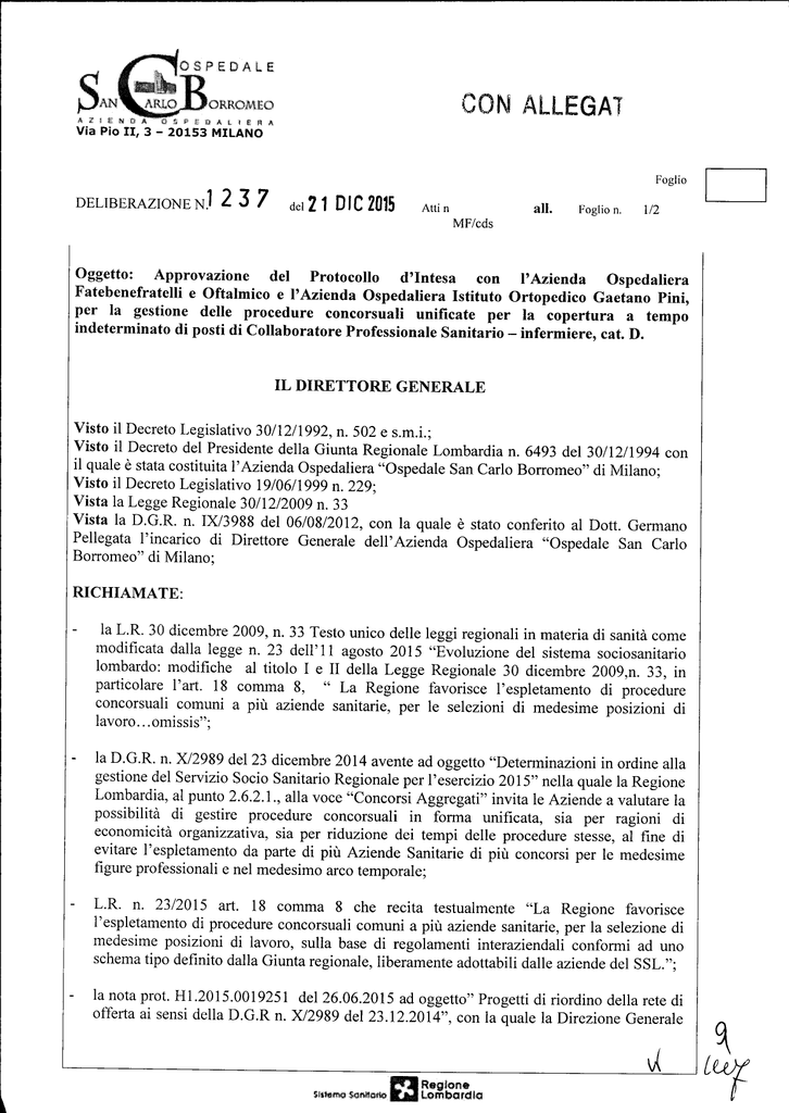 DOC. 1237 - Ospedale San Carlo Borromeo