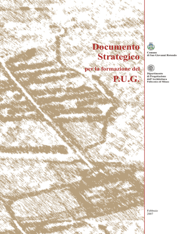 Documento Strategico Comune di San Giovanni Rotondo per la formazione del P.U.G. Dipartimento di Progettazione dell’Architettura Politecnico di Milano Febbraio 2007 Gruppo di lavoro: Prof. Vincenzo Donato Arch. Umberto Bloise Dott. Urb. Luigi Longo Responsabile della Ricerca Incaricato della stesura del PUG Responsabile dell’Ufficio di Piano Arch. Anna Grazia Caricato Arch. Giovanni Drago Arch. Piero Favino Arch. Ottorino Meregalli Arch. Stefano Recalcati Arch. Andrea Sampaoli Consulente esterno Consulente esterno Tecnico laureato Tecnico laureato Titolare di assegno di ricerca Consulente esterno Ing. Luigi Cascavilla Ing. Celestino Grifa Tecnico dell’Ufficio di Piano Tecnico dell’Ufficio di Piano Ricerche sui singoli temi: La struttura socio economica Arch. Stefano Recalcati L’ambito extra urbano Arch. Anna Grazia Caricato Arch. Giovanni Drago Arch. Stefano Recalcati Arch. Andrea Sampaoli Analisi della strumentazione urbanistica vigente Arch. Anna Grazia Caricato Stato di attuazione del PRG vigente Arch. Anna Grazia Caricato Arch. Giovanni Drago Le previsioni di popolazione Arch. Stefano Recalcati Le attrezzature pubbliche Arch. Anna Grazia Caricato Mobilità Arch. Piero Favino Redazione grafica dei disegni Arch. Ottorino Meregalli Consulenza sui temi di ricerca Prof.ssa Maria Margherita Baggio Documento strategico per la formazione del piano urbanistico generale di San Giovanni Rotondo SOMMARIO Il Documento strategico per la formazione del Piano urbanistico generale .......................... 3 Assunti problematici e criticità emergenti ................................................................................ 5 Paesaggio naturale e umanizzato ................................................................................. 5 Itinerari di ricognizione ambientale ............................................................................. 6 Pellegrinaggio e turismo .............................................................................................. 7 Ospedale Casa Sollievo della Sofferenza ..................................................................... 8 “Città internazionale”.................................................................................................. 9 Assetto produttivo ....................................................................................................... 10 Accessibilità alla città e alle sue parti........................................................................ 10 Gestione e attuazione del Piano vigente..................................................................... 16 Perequazione delle opportunità.................................................................................. 17 Struttura socio economica ........................................................................................................ 19 Settore delle costruzioni.............................................................................................. 23 Settore del turismo ...................................................................................................... 24 Settore della sanità ..................................................................................................... 31 Ambito extraurbano, caratteri, salvaguardia e valorizzazione............................................. 35 Beni paesaggistici e il territorio agrario.................................................................... 35 Piano Urbanistico Territoriale Tematico del Paesaggio, contenuti, disposizioni e primi adempimenti Comunali.............................................. 38 Altre disposizioni e vincoli sovraordinati per la tutela dell’ambiente ....................... 44 Istituzione del Parco Nazionale del Gargano.......................................................... 45 Piano del Parco Nazionale del Gargano ................................................................. 45 Proposti Siti d'Importanza Comunitaria e Zone di Protezione Speciale................. 46 Piano di Bacino Stralcio per l'Assetto Idrogeologico dell’Autorità di Bacino della Puglia ....................................................................... 47 Aree sottoposte a vincolo idrogeologico ................................................................ 52 Progetto per la salvaguardia del paesaggio. Gli adeguamenti di seconda attuazione al PUTT/P .................................................. 53 Paesaggio agrario e usi agricoli ................................................................................ 55 Valorizzazione e primi orientamenti progettuali ........................................................ 61 Paesaggio e produzioni agricole ............................................................................. 62 Analisi della strumentazione urbanistica comunale passata e vigente................................. 65 Piano Regolatore Generale, (Ulivieri) ....................................................................... 65 Variante generale al PRG, (Dal Sasso)...................................................................... 66 Variante al PRG per comparti edificatori, 1995 ........................................................ 71 Risultanze.................................................................................................................... 74 Pag. 1 Documento strategico per la formazione del piano urbanistico generale di San Giovanni Rotondo Stato di attuazione del PRG vigente ........................................................................................ 75 Carichi insediativi residenziali derivati e derivabile dall’attuazione dei piani attuativi approvati, sulla base delle volumetrie concesse............................75 Carichi insediativi residenziali derivati e derivabile dall’attuazione dei piani attuativi convenzionati, realizzati ed in via di realizzazione .......................75 Carichi insediativi residenziali derivabili dall’attuazione dei piani attuativi ap