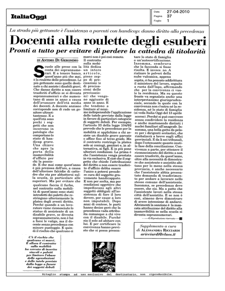 Docenti alla roulette degli esuberi