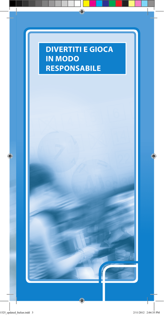 1525_updated_Italian.indd 3 DIVERTITI E GIOCA IN MODO RESPONSABILE 2/11/2012 2:04:35 PM 1 Divertiti e gioca in modo responsabile Indice-sommario Introduzione alla Tatts Lotteries..........................................................2 Programma di gioco responsabile.......................................................3 Divertiti e gioca in modo responsabile................................................4 Esiste assistenza se ne hai bisogno.....................................................5 Tieniti informato – conosci le probabilità di vincita............................6 Probabilità di vincita al Lotto..............................................................6 Probabilità di vincita con i biglietti Instant Scratch-Its.........................8 Reclami in merito all’operatività del Codice......................................10 Il programma Player’s 1st..................................................................10 Sintesi del Codice..............................................................................11 1525_updated_Italian.indd 4 © Ottobre 2012 2/11/2012 2:04:36 PM Introduzione alla Tatts Lotteries La Tattersall’s Sweeps Pty Ltd (Tatts), la Tatts NT Lotteries (Tatts NT), la Golden Casket Lottery Corporation Limited (Golden Casket) e la New South Wales Lotteries Corporation Pty Ltd (NSW Lotteries) (collettivamente denominate Tatts Lotteries) sono aziende leader nella gestione di lotterie e concorsi a premi innovativi e socialmente responsabili in Victoria, Tasmania, NT, ACT, Queensland e New South Wales. La Golden Casket opera dal 1916, anno in cui venne ideata la prima lotteria Golden Casket per raccogliere fondi destinati ad aiutare i reduci della Prima Guerra Mondiale e le loro famiglie. La Tatts fu inizialmente fondata da George Adams nel 1881 mentre la New South Wales Lotteries è in attività da oltre 80 anni, ossia dal 1931 quando operava con il nome di State Lottery Office. Il principio del gioco responsabile si basa sull’essere informati, sul divertirsi e sul conoscere i propri limiti. La Tatts Lotteries e la nostra rete di agenzie al dettaglio (dettaglianti) sostengono e incoraggiano il gioco responsabile alle nostre lotterie e concorsi a premi. Siamo votati ai codici di condotta per il gioco d’azzardo responsabile della Tatts Lotteries per ciascuno stato o territorio in cui operiamo (i Codici) e a fare in modo che il giocare alle lotterie rimanga un’attività divertente e piacevole. 1525_updated_Italian.indd 5 Tatts Lotteries 2 2/11/2012 2:04:37 PM 3 Divertiti e gioca in modo responsabile Programma di gioco responsabile La Tatts Lotteries gestisce un programma di gioco responsabile che mira ad incoraggiare il gioco d’azzardo responsabile. Pur riconoscendo che le lotterie rappresentano una forma di gioco d’azzardo a basso rischio, il programma di gioco responsabile della Tatts Lotteries prevede una serie di misure volte ad incoraggiare modi responsabili di giocare alle lotterie. Il presente opuscolo ‘Divertiti e gioca in modo responsabile’ punta a tenerti informato in modo che tu possa continuare a divertirti mentre giochi ai nostri concorsi. I pilastri del programma di gioco responsabile sono i codici di condotta della Tatts Lotteries per ciascun stato a territorio dell’Australia. Nel presente opuscolo troverai una sintesi di alto livello di tutti i codici. Puoi prendere visione della versione integrale del codice in vigore presso un particolare stato o territorio presso un’agenzia della Tatts, della NSW Lotteries o della Golden Casket oppure su internet. Ai sensi dei codici di gioco responsabile della Tatts Lotteries, la Tatts, la NSW Lotteries, la Golden Casket, e i nostri dettaglianti si impegnano a: 1525_updated_Italian.indd 6 • • • • • • • • Non vendere prodotti della lotteria a minori. Trattare i clienti in modo equo ed onesto. Rispettare la privacy e la riservatezza dei clienti. Offrire informazioni accurate sui giochi e sulle relative regole. Onorare tutte le legittime rivendicazioni di premi. Promuovere le nostre lotterie e concorsi a premi in modo onesto. Incoraggiare i clienti a porre un limite a quanto giocano a seconda della propria situazione personale. Esporre al pubblico una copia del Gambling and Racing Control (Code of Practice) Regulation 2002 per l’ACT presso tutte le agenzie della Tatts o della NSW Lotteries nell’ACT. © Ottobre 2012 2/11/2012 2:04:37 PM DIVERTITI E GIOCA IN MODO RESPONSABILE Divertiti e gioca in modo responsabile Giocare alla lotteria dovrebbe essere sempre un’attività divertente e pertanto la Tatts Lotteries ti incoraggia a porre un limite a quanto giochi. Se giocare alla lotteria cessa di essere un divertimento, dovresti rivolgerti a chi è in grado di offrirti assistenza al riguardo. Ecco alcuni segnali cui fare attenzione: • Dedichi sempre più tempo e denaro al gioco d’azzardo. • Non sai quando smettere di giocare. • Prendi a prestito denaro per giocare d’azzardo o per risolvere problemi di natura economica provocati dal gioco d’azzardo. • Spendi più soldi per il gioco d’azzardo di quanto ti puoi permettere. • Provi un senso di colpa in merito al gioco d’azzardo. • Una persona a te vicina si lamenta del tuo giocare d’azzardo. • Ti arrabbi o diventi stressato quando perdi o quando cerchi di ridurre il tempo e il denaro che dedichi al gioco. • Fai cose che mettono a repentaglio un rapporto, il lavoro, la vita in famiglia o una buona occasione pur di giocare d’azzardo. Ricorda di porre un limite a quanto giochi a seconda della situazione personale. 1525_updated_Italian.indd 7 Tatts Lotteries 4 2/11/2012 2:04:38 PM 5 Divertiti e gioca in modo responsabile Esiste assistenza se ne hai bisogno Se pensi che tu o qualcuno che conosci ha un problema con il gioco d’azzardo, esistono appositi servizi d’assistenza. Per parlare con un counsellor, chiama la Gambling Helpline che opera 24 ore su 24: • • • Numero nazionale: 1800 85