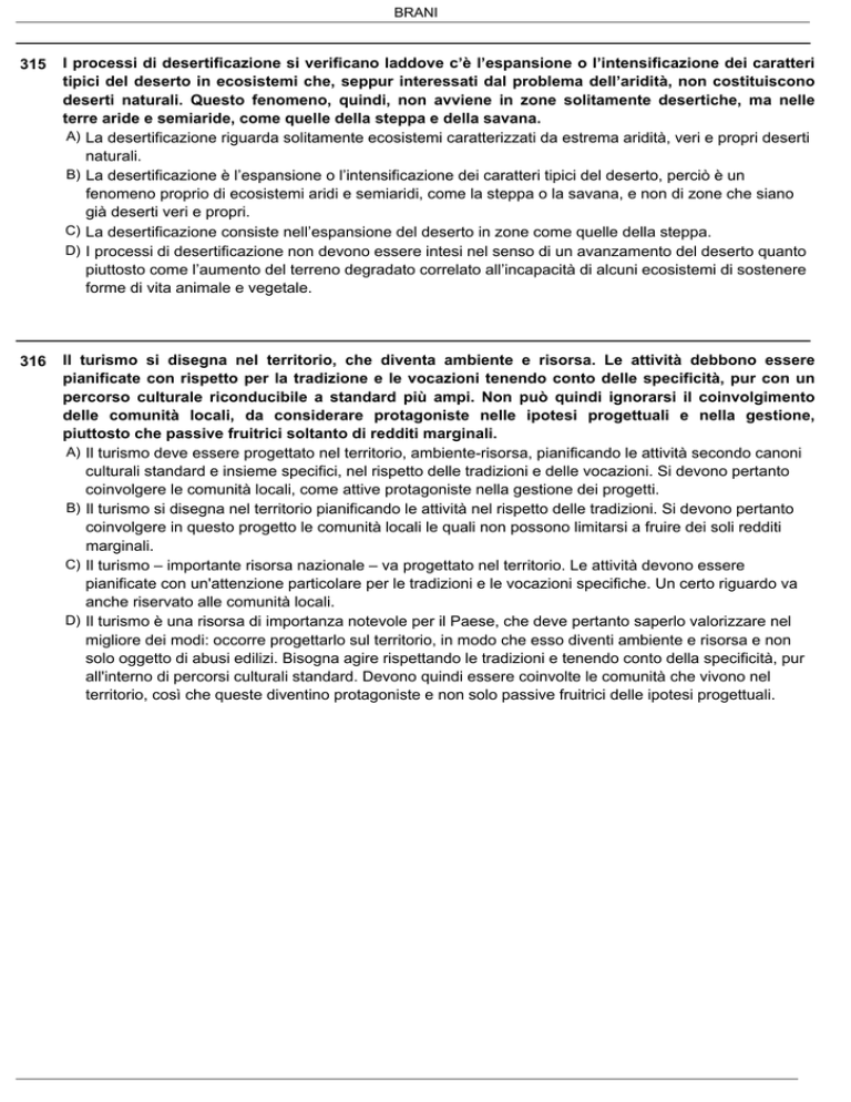 Leggere il brano e rispondere ai relativi quesiti.