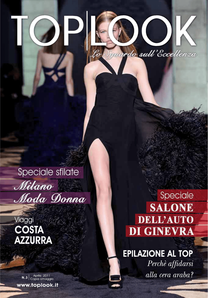 1 4 Copertina: abito Versace, autunno inverno 2011-2012 SOMMARIO Lo Sguardo sull’Eccellenza MODA Seguici sul sito w w w. t o p l o o k . i t Diventa amico di Toplook Rivista TOP LOOK Anno 1 - Numero 3 Aprile 2011 Pubblicazione mensile Distribuzione gratuita ISCRIZIONE R.O.C.: 19959 EDITORE E PROPRIETARIO EXELLENT Service di Massimiliano Pozzi www.exellentservice.com [email protected] Via San Vito, 1183 Santarcangelo di Romagna (RN) 4 6 8 10 12 Speciale sfilate Milano Moda Donna autunno inverno 2011/2012 Gucci Dolce e Gabbana Versace Roberto Cavalli Gianfranco Ferrè 14 16 17 18 Dibrera - Il valore di un segno compie 20 anni Top per lei Top per lui Intimo Ritratti Milano 20 ARREDAMENTO 20 Estel - I maestri del passato e i migliori designer del futuro 24 Via Roma 60 26 Lampadari Voltolina 28 BENESSERE 28 Epilazione al top - Perchè affidarsi alla cera araba? 30 Quante calorie si bruciano in palestra? 32 Benessere relazionale TECNOLOGIA 34 36 38 40 Casa ecologica in Catalogna Io non tremo - Mostre e convegni sul rischio sismico Reggini presenta la nuova Audi A6 Yikebike - La bici elettrica pieghevole REDAZIONE Direttore Responsabile Massimiliano Pozzi Collaboratori Fabio Milani Elena Tarfanelli Claudia Ditano Oroscopo Cati Del Gesso Progetto grafico EXELLENT Service Grafica e impaginazione Melany Cibrario Ruscat [email protected] STAMPA GE.GRAF S.r.l. Bertinoro (FC) PER LA TUA PUBBLICITÀ SULLA RIVISTA Cell. 348 4013240 - [email protected] “TOP LOOK” offre esclusivamente un servizio, non riceve compensi nelle contrattazioni, non è responsabile per qualità, provenienza o veridicità delle inserzioni. L’editore si riserva il diritto di rifiutare un inserzione a suo insindacabile giudizio. L’editore non risponde per eventuali perdite causate dalla non pubblicazione per ritardi nella consegna grafica dell’inserzione o per qualsiasi altro motivo. È vietata ogni riproduzione anche parziale di questo giornale. 2 MOTORI 42 44 46 47 48 49 Speciale Salone di Ginevra Lamborghini Aventador LP 700-4 Aston Martin Virage V12 Maserati Grancabrio Sport Ferrari FF Alfa Romeo 4C Mercedes SLS Hawk 42 50 Bugatti Sedan VIAGGI 52 Costa Azzurra 54 Venezia come non l’avete mai vista GUSTO 56 58 60 61 Ristorante Alabàrdos - Budapest The Ladurée Prestigioso rum - Ron Milionario In cucina con lo chef - Agnello arrosto 52 OROSCOPO 62 Top 12 - La classifica zodiacale di aprile 64 1945 - 1953 L’Italia s’è desta 3 MODA 4 MODA 5 MODA SFILATE AUTUNNO INVERNO 2011/2012 Gucci Appena ena spenti i riflettori sulle passerelle di Londra ecco che la moda è subito sbarcata a Milano con la settimana della moda dedicata alle collezioni per la prossima stagione autunnale. Grande spettacolo durante la prima giornata di sfilate quando è stata presentata la collezione Gucci autunno inverno 2011-2012, una collezione che Frida Giannini, direttore creativo della maison ha così sintetizzato: “È un dandysmo al femminile, che sintetizza in chiave contemporanea glamour, seduzione, elementi iconografici del marchio, per una donna dalla personalità decisa, cesellata dalla cura dei dettagli e pronta a osare”. In passerella hanno infatti sfilato nuvole di pelliccia colorata, trasparenze impalpabili, accenti maschili, tocchi in vernice da lady misteriosa ma visti in chiave ironica. Le silhouettes hanno mostrato vezzi sartoriali e proporzioni anni ‘70 estremizzate con linee allungate fino sotto il ginocchio e leggermente svasate. Stole in vello prezioso con nappine pongono l’attenzione alle spalle, strette nelle piccole giacche mannish con revers e nei cappotti con dettagli militari dalla vita stretta. Per la sera invece lunghe gonne fluide a teli di chiffon e organza trasparente, portate su alte culotte e con effervescenti cascate di fiori sulle spalle e allo scollo, abiti eterei, impalpabili che concedono effetti seethrough e si annodano al collo con lunghe sciarpe. La palette di colori ha visto tonalità forti e cariche con smeraldo, turchese, ocra, senape, ottanio, ruggine, ciliegia, lilla, lime, nero, viola e oro protagonisti principali della collezione. Ancora una volta negli accessori si è rinnovata la maestria artigianale che da sempre è sigillo di Gucci celebrando un grande ritorno a borse più costruite e strutturate. La New Jackie presentata nella nuova versione con tracolla lunga staccabile e ha debuttato una nuova versione dello storico modello Bardot, nato nel 1975, dalla chiusura a sperone e dalla forma semiellittica. Per le calzature, sandali di pelle e di suede con profili color oro e stivali alti al ginocchio di pelle e di vernice. Cinture sottili di pelle e vernice, bracciali di pelle colorata con décor metallici e occhiali da sole oversize dalle linee squadrate e divisi nella struttura con una parte sfumata hanno completato il look delle modelle. Di Fabio Milani 6 MODA MODA 7 MODA SFILATE AUTUNNO INVERNO 2011/2012 Dolce e Gabbana pe da uomo, completi maschili impreziositi da dècor ricamati sul bavero delle giacche e cappotti con scintillanti leggings di paillettes. La palette di colori ha visto una prevalenza di nero e grigio accompagnati da giallo, rosa, azzurro, fucsia, verde, oro e argento. Molti tessuti hanno proposto le stelle come elemento grafico: le troviamo infatti su tutte le stampe assieme a preziosi dècor per ornare abitini e completi. Gli accessori hanno mostrato oggetti presi dal guardaroba maschile come bretelle cappelli e le francesine, ma tigrate e illuminate da paillettes colorate. Poi ancora decolletè di pelle ornate da stelle e note musicali, orecchini di metallo e plexiglass a forma di stella, cintureportafoglio, la borsa Miss Sicily, proposta in varie versioni, anche mini da portare allacciata in vita come se fosse un marsupio oppure midsize e morbide borse a busta. “Entrare nei nostri negozi deve essere come entrare in una pasticceria, con la voglia di assaggiare tutto”, hanno dichiarato i due stilisti, “Per questo l’importante è avere anche accessori accat