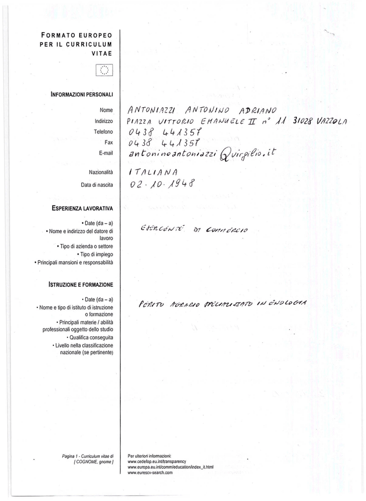 l . Curriculum vi/ae di