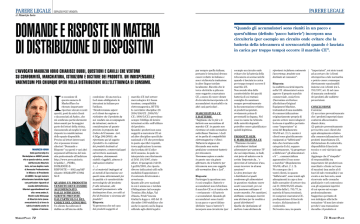 parere legale parere legale servizio post vendita di Maurizio Iorio domande e risposte in materia di distribuzione di dispositivi l’avvocato maurizio iorio chiarisce dubbi, questioni e cavilli che vertono su conformità, marchiatura, istruzioni e diciture dei prodotti. un indispensabile vademecum per chiunque operi nella distribuzione dell’elettronica di consumo. I maurizio iorio Dalla partnership tra Marketplace e ANDEC prende vita a questa rubrica, curata dall’Avvocato Maurizio Iorio, nel suo duplice ruolo di Avvocato Professionista in Milano e di Presidente di ANDEC. Su ogni numero affronteremo tematiche legali con particolare riguardo al mondo dell’elettronica. Ulteriori approfondimenti sul sito: www.andec.it. Mentre sulla Web page di Maurizio Iorio (www. avvocatoiorio.it) si trova la rubrica tradotta anche in inglese e francese. MarketPlace 72 n occasione di questo numero di MarketPlace ho ritenuto importante riportare alcuni recenti quesiti, posti da miei clienti o da associati ad Andec, che mi sembrano particolarmente interessanti per la maggior parte dei lettori della rivista, riassumendo al meglio le mie risposte in considerazione dello spazio disponibile. Preciso ai lettori interessati che si possono trovare ulteriori “Domande e Risposte” su questi e vari altri argomenti all’interno del mio sito professionale all’indirizzo http://www.avvocatoiorio. it/public/__PIOR4_ DOMANDE-ERISPOSTE-----1062.asp?idP ulsante=1062&idPP=1788& M=Y. Quando un prodot to venduto deve essere accompagnato dalle istruzioni scrit te previste dall’articolo 6 del Codice del Consumo? Un cliente ha sollevato il dubbio se all’interno della confezione di una torcia a Led siano obbligatorie le istruzioni in italiano per l’utilizzo. “Desidereremmo sapere se il cliente ha ragione a richiedere che il prodotto da noi venduto sia accompagnato da istruzioni, anche in considerazione di quanto previsto in proposito dal Codice del Consumo (art. 6 DLgs 206/2005), che riportiamo qui di seguito: I prodotti o le confezioni dei prodotti destinati al consumatore, commercializzati sul territorio nazionale, riportano, chiaramente visibili e leggibili, almeno le indicazioni relative: (….) e) ai materiali impiegati ed ai metodi di lavorazione ove questi siano determinanti per la qualità o le caratteristiche merceologiche del prodotto; f) alle istruzioni, alle eventuali precauzioni e alla destinazione d’uso, ove utili ai fini di fruizione e sicurezza del prodotto”. Risposta: Va premesso che nel caso dei prodotti soggetti al marchio CE (nel settore merceologico Ict: bassa tensione, compatibilità elettromagnetica, RT TE) le correlative discipline (D. 2004/108/CE ; 2006/95/ CE ; 1999/5/CE ) prevedono sempre l’obbligo di fornire istruzioni scritte sull’utilizzo del prodotto. Quando i prodotti non sono soggetti a marcatura CE né ad altre discipline specifiche nazionali o UE che prevedano in punto specifici requisiti, trova applicazione la norma da ricordata del Codice del Consumo, la quale va interpretata con riferimento al D.M. 101/1997, citato all’art. 10 paragrafo 2 del D. Lgs206/2005, che riporta diverse indicazioni utili sulle modalità di apposizione e il contenuto di istruzioni e avvertenze . Quanto alle aree nazionali in cui è ammesso e tutelato il bilinguismo (ad esempio Trentino Alto Adige, Val d’Aosta, Friuli Venezia Giulia) la legge n. 482 del 15 dicembre 1999 stabilisce che anche in questi casi la lingua ufficiale agli effetti legali è “Quando gli accumulatori sono riuniti in un pacco e quest’ultimo (definito ‘pacco batterie’) incorpora una circuiteria (per esempio un circuito onde evitare che la batteria della telecamera si sovraccarichi quando è lasciata in carica per troppo tempo) occorre il marchio CE”. pur sempre quella italiana; pertanto le istruzioni devono essere redatte in italiano e non è richiesta la traduzione in altre lingue tutelate localmente. Ricordo che le torce elettriche a pila non sono soggette a marcatura CE, a meno di essere dotate di circuiteria incorporata e di accumulatori ricaricabili o in altri casi particolari . Marchiatura CE e bat terie “Sappiamo che le pile e le batterie non necessitano di marchio CE in quanto non rientrano né nella normativa sulla Bassa Tensione (=Lvd) né in quella di compatibilità elettromagnetica (=Emc). Tuttavia la dogana sta bloccando una nostra spedizione contenente batterie per telecamere. Vorremmo sapere se anche in questo caso sia giusto affermare che le batterie per telecamera non sono soggette alle normative Emc e Lvd”. Risposta: Purtroppo la questione non è così semplice. Batterie e accumulatori non richiedono il marchio CE se si tratta solo – ovviamente – di batterie e accumulatori. Quando gli accumulatori sono riuniti in un pacco e quest’ultimo (definito “pacco batterie”) incorpora una circuiteria (per esempio un circuito onde evitare che la batteria della telecamera si sovraccarichi quando è lasciata in carica per troppo tempo) occorre il marchio CE. Non avendo idea delle caratteristiche dei pacchi batteria di cui trattasi: consiglio di esaminare sempre preventivamente la documentazione relativa ai prodotti acquistati, ovviamente prima di presentarli in dogana. Nel caso in esame la richiesta delle autorità doganali potrebbe essere giustificata e quindi legittima. Prodot ti Oem e marchiatura CE “Possiamo rivendere a distributori italiani alimentatori per antenne TV che noi importiamo, in bulk, cioè privo di adesivo con la scritta ‘Importato da...’ e sprovvisto di istruzioni d’uso, senza incorrere in alcuna sanzione? Le devo precisare che i distributori ai quali venderemo gli alimentatori in questione risultano essere nostri concorrenti, per cui non possiamo utilizzare il nostro marchio. Per cautelarci, dobbiamo comunque inserire una dicitura per la vendita a questi distributori? Quella che ipotizziamo di mettere è una dicitura da riportarsi in fattura contenente l’avvertenza