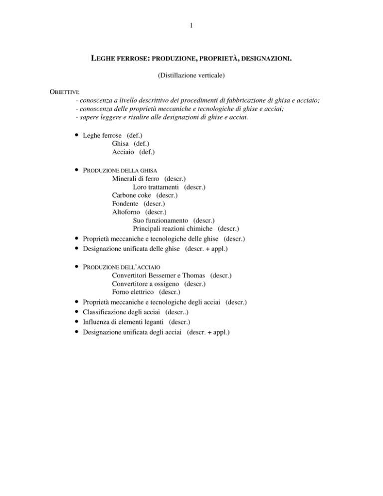 - conoscenza a livello descrittivo dei procedimenti di fabbricazione di ghisa e acciaio;