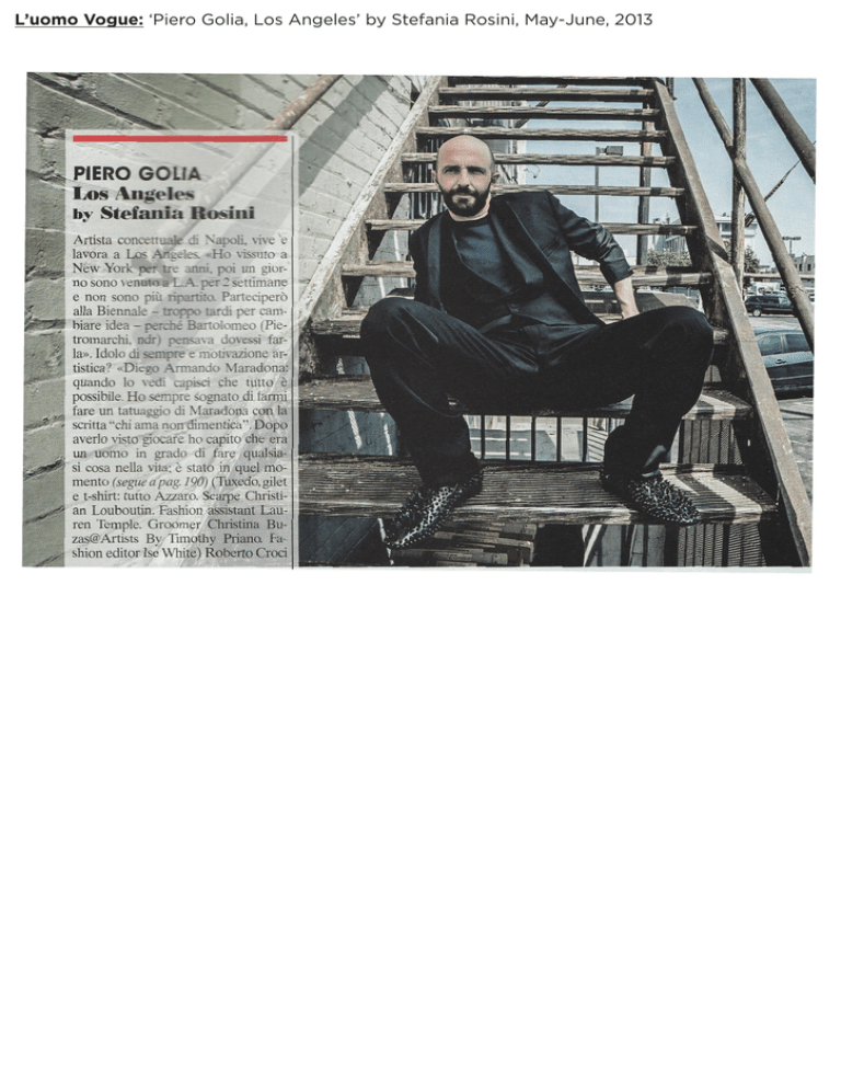 L`uomo Vogue: `Piero Golia, Los Angeles` by Stefania Rosini, May