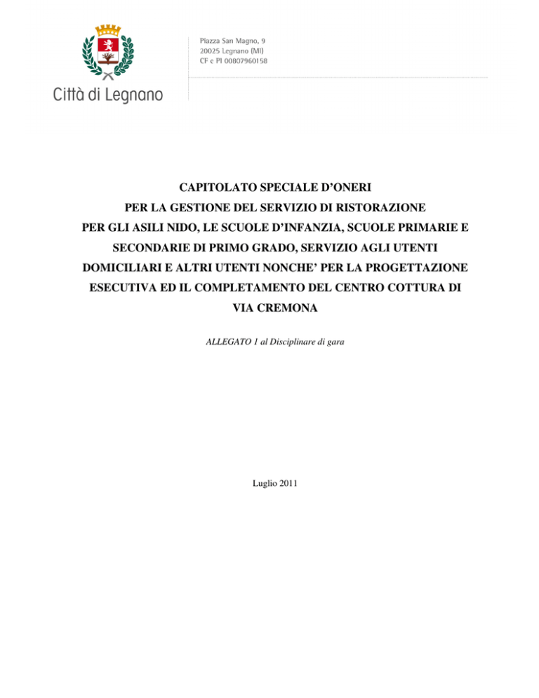 capitolato speciale d`oneri per la gestione del servizio di ristorazione