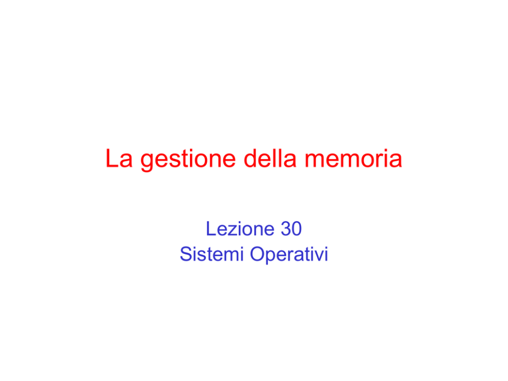 La gestione della memoria Lezione 30 Sistemi Operativi Background • Un programma per poter essere eseguito deve essere caricato in memoria • Per questioni prestazionali devono essere caricati in memoria contemporaneamente più processi • L accesso a memoria centrale è una delle operazioni più frequenti effettuate da un processo • Accesso ai dati e al codice • La tecnica di gestione della memoria ha quindi un effetto determinante sulle prestazioni del sistema A.A. 2010/2011 2 Corso: Sistemi Operativi © Danilo Bruschi Prestazioni • Calcoliamo l utilizzo della CPU in un sistema monoprogrammato • Se l unico processo spende in media 40% del tempo di esecuzione in attesa di I/O, l utilizzo complessivo della CPU è 0.6 = 1 – 0.4 • Per migliorare questo parametro dobbiamo ridurre il tempo in cui la CPU è inattiva • Fare in modo che quando un processo esegue I/O il microprocessore venga usato per altre attività A.A. 2010/2011 3 Corso: Sistemi Operativi © Danilo Bruschi Prestazioni • Con due processi in esecuzione, ciascuno con percentuale di I/O pari al 40%, l utilizzo della CPU diventa 0.84 = 1 - 0.16 • Generalizzando • Siano dati n processi indipendenti • Ciascun processo spende una frazione p del proprio tempo di esecuzione in attesa di I/O • Non usa la CPU • La probabilità che tutti gli n processi siano in attesa è pn • L utilizzazione della CPU è 1 - pn • Quando tutti i processi sono in attesa, la CPU è idle A.A. 2010/2011 4 Corso: Sistemi Operativi © Danilo Bruschi Memoria e prestazioni Livello di multiprogrammazione A.A. 2010/2011 5 Corso: Sistemi Operativi © Danilo Bruschi Osservazioni • Se i programmi sono I/O bound, molti programmi devono essere in esecuzione per raggiungere un elevato utilizzo di CPU • Aumentare la memoria centrale di un sistema non fa aumentare l utilizzo di CPU in misura proporzionale all incremento del livello di multiprogrammazione • L efficacia dipende dal livello corrente di utilizzo • Pendenza della curva di utilizzo A.A. 2010/2011 6 Corso: Sistemi Operativi © Danilo Bruschi Requisiti Memory Manager • La presenza contemporanea in memoria di più processi e la loro esecuzione concorrente è possibile solo se il MM è in grado di garantire la loro coesistenza evitando ogni tipo di interferenza non espressamente richiesta A.A. 2010/2011 7 Corso: Sistemi Operativi © Danilo Bruschi Due diverse visioni della memoria • Dal punto di vista hardware: un insieme di byte da condividere tra più processi • Dal punto di vista dei processi: un insieme di byte dedicato • Il Memory Manager deve consentire a queste due visioni di coesistere e lo fa (con il supporto dell’hw) garantendo il soddisfacimento dei seguenti requisiti: • Rilocazione: ogni processo può essere caricato in qualunque indirizzo fisico • Protezione: un processo non può accedere (se non autorizzato) allo spazio di memoria di un altro processo • Sharing: alcuni spazi di memoria fisica possono essere condivisi tra processi A.A. 2010/2011 8 Corso: Sistemi Operativi © Danilo Bruschi Rilocazione: Symbolic names → Logical names → Physical names • Lo spazio di indirizzamento di un programma è costituito da nomi simbolici cioè gli identificatori che il programmatore assegna a variabili, label e procedure • Lo spazio degli indirizzi simbolici viene trasformato in spazio logico dal compilatore/ linker • Lo spazio logico deve poi essere mappato sullo spazio fisico, cioè sulle effettive locazioni di memoria che conterranno dati e istruzioni A.A. 2010/2011 9 Corso: Sistemi Operativi © Danilo Bruschi Indirizzi logici & fisici • In generale definiamo: • Logici: indirizzi generati dalla CPU a seguito dell elaborazione (decode) degli indirizzi degli operandi presenti in un istruzione • Fisici: indirizzi che giungono sul bus indirizzi alla memoria centrale e denotano una precisa locazione di memoria • Raramente indirizzi logici e fisici coincidono, l operazione di associazione tra indirizzi logici e fisici è chiamata binding A.A. 2010/2011 10 Corso: Sistemi Operativi © Danilo Bruschi Rilocazione e Binding • Il processo attraverso cui si riassegna un nuovo valore agli indirizzi (logici o fisici) di dati e istruzioni di un programma • Binding: l’operazione effettuata dal processo di rilocazione per assegnare a dati e istruzioni di un processo un valore in un determinato spazio di indirizzi • In seguito indichiamo con binding, solo l’operazione limitata all’assegnazioni di indirizzi di memoria centrale A.A. 2010/2011 11 Corso: Sistemi Operativi © Danilo Bruschi Binding • Il binding può essere effettuato in momenti diversi: • Compile time: • Se in fase di compilazione è gia noto lo spazio di memoria fisica che dovrà contenere il processo, è possibile generare codice assoluto; qualora lo spazio fisico dovesse essere modificato sarà necessario ricompilare il codice • Se lo spazio di memoria fisico che conterrà il programma non è noto alla compilazione, il compilatore associerà al programma uno spazio logico (rilocabile) che potrà essere mappato sullo spazio fisico: • Load time: durante il caricamento del programma da memoria di massa a memoria centrale • Execution time: durante la fase di escuzione di un’istruzione di provvede a rilocare opportunamente gli indirizzi in essa contenuti. In questo caso è necessario un supporto hw per lo svolgimento dell’operazione A.A. 2010/2011 12 Corso: Sistemi Operativi © Danilo Bruschi Binding time tradeoff • Early binding (compilatore) • Produce codice efficiente • Consente di anticipare in fase di compilazione una serie di verifiche • Delayed binding (linker e Loader) • Produce codice efficiente • Consente compilazioni separate • Facilità portabilità e condivisione del codice • Late binding (VM, linker/loader dinamici, overlay) • Codice meno efficiente • Check a runtime • Molto flessibile, consente riconfigurazioni a run time A.A. 2010/2