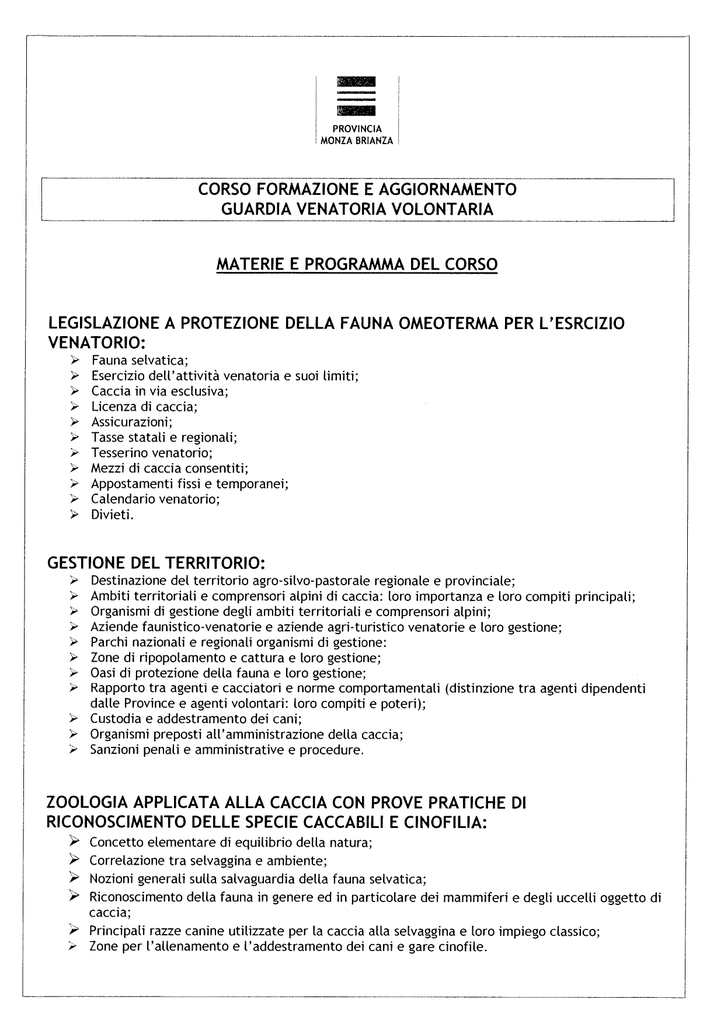 Domanda ammissione al corso di formazione e aggiornamento per