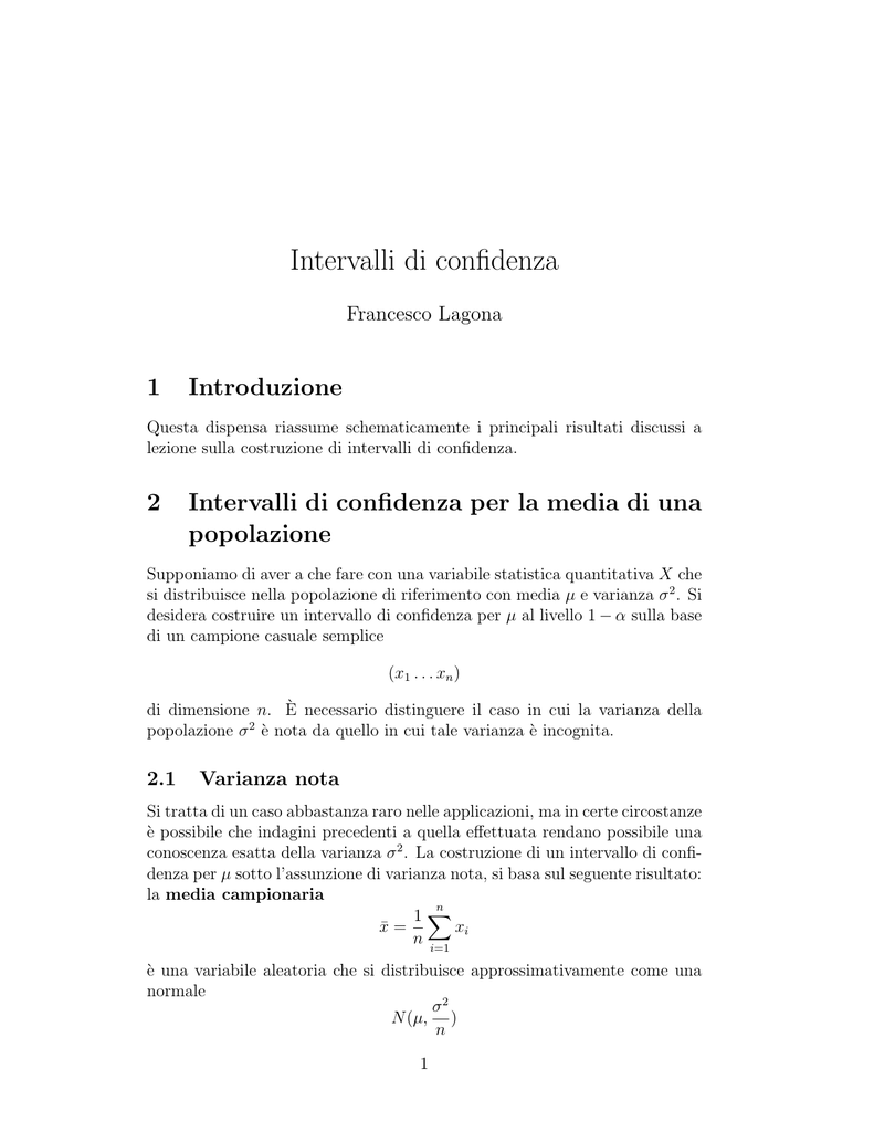 Intervalli di confidenza
