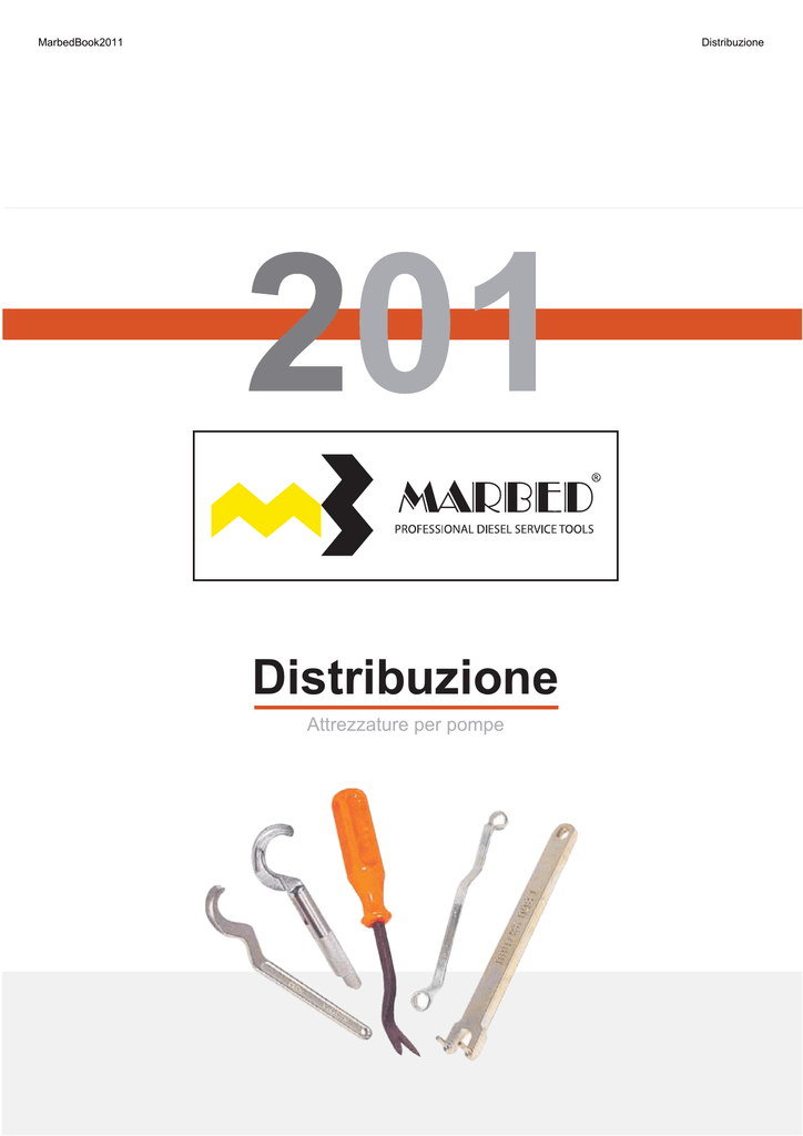 MarbedBook2011 Distribuzione Distribuzione Attrezzature per pompe www.marbed.com PROFESSIONAL DIESEL SERVICE TOOLS Distribuzione Attrezzature per pompe AUDI - VOLKSWAGEN BMW FIAT - ALFA ROMEO - LANCIA FORD MERCEDES OPEL PEUGEOT - CITROEN (PSA) RENAULT ROVER VOLVO Altri attrezzi distribuzione Ingranaggi 3 4 5-8 9 10 11 12 13 - 14 15 16 17 18 - 19 PROFESSIONAL DIESEL SERVICE TOOLS AUDI - VOLKSWAGEN Staffa fissa albero di distribuzione motori VOLKSWAGEN, AUDI TD Dinamometro per controllo tensione cinghia dentata VW GOLF Perno mantenimento fase fissa puleggia VOLKSWAGEN GOLF Asta mantenimento fase punterie motori VW GOLF Chiave registro punterie motore VW GOLF Estrattore puleggia lato pompa VW POLO - PASSAT, VOLVO 740 TD Estrattore puleggia lato pompa VW GOLF, RENAULT 18-20-30, PEUGEOT mot.XUD Estrattore puleggia lato pompa AUDI TD Chiave mantenimento fase puleggia AUDI, VW GOLF Asta mantenimento fase punterie motori VOLKSWAGEN, AUDI Chiave poligonale aperta 17-17 per dadi tubazioni AUDI, VW GOLF, VOLVO Chiave dentata per registrazione tensione cinghia dentata VW GOLF, AUDI 201.R01 - 3 Chiave registro punterie motore AUDI 8105 9476 9581 9582 9583 9597 9598 KDEP 1118 9598-B 9686 KDEP 1116 9687 9712 KDEP 1115 9736-A 9744 BMW PROFESSIONAL DIESEL SERVICE TOOLS Staffa messa in fase motori M47 e M 57 montati su BMW 320 e BMW 330 Perno mantenimento fase BMW TD Perno mantenimento fase BMW TD Staffa riscontro fase BMW TD Staffa riscontro fase BMW 525 TDS Estrattore puleggia lato pompa BMW TD Espulsore pompa BMW 525 TDS Chiave per dado esagonale fissa tendicinghia da mm 50 BMW 325-TDS 8115 9752 0 986 611 875 KDEP 1139 9752-A 9753 9753-A 9754 9754-A 9754-B 201.R01 - 4 PROFESSIONAL DIESEL SERVICE TOOLS FIAT, ALFAROMEO, LANCIA Tendicinghia di distribuzione FIAT PUNTO Chiave smontaggio candelette preriscaldamento motori FIAT Estrattore puleggia lato pompa FIAT UNO TD Chiave registrazione punterie vetture FIAT diesel Chiave sagomata da mm 13 per smontaggio preriscaldamento motori FIAT SOFIM Leva per pastiglie vetture FIAT (in carrozzeria per bottoni tappezzeria) Chiave a denti per registrazione tensione cinghia dentata FIAT UNO, FIAT CROMA, FIAT REGATA, LANCIA THEMA etc. Chiave sagomata da mm 13 per dado fissa pompa su motori FIAT DAILY Chiave sagomata da mm 13 per dado fissa pompa su motori FIAT SOFIM Chiave sagomata per registrazione punterie su motori FIAT SOFIM Perno mantenimento fase motori FIAT SOFIM Leva per pastiglie punterie motori FIAT SOFIM Pinza per estrarre pastiglie punterie motori FIAT SOFIM 201.R01 - 5 8022 9156 9229 9371 9373 9374 9377 9491 9492 9494 9493 9516 9517 FIAT, ALFA ROMEO, LANCIA PROFESSIONAL DIESEL SERVICE TOOLS Estrattore puleggia lato pompa FIAT RITMO I e II serie, FIAT REGATA, FIAT UNO D ecc Estrattore puleggia lato pompa FIAT CROMA iniezione diretta TD Espulsore pompa BOSCH su ALFA ROMEO 90 (estrae e tiene fissa la distribuzione) Espulsore pompa BOSCH su ALFA ROMEO 75 e 33 (estrae e tiene fissa la distribuzione) 9595 9595-A 9596 9596-A 36x1,5 58x1,5 Espulsore pompa BOSCH VE su ALFA ROMEO 75 e 33 (estrae e tiene fissa la distribuzione su motori ALFA ROMEO dopo il 1989) Estrattore puleggia lato pompa FIAT DUCATO 2,5 Estrattore universale registrabile lato pompa per vetture fiat BRAVO/BRAVA Attrezzo mantenimento fase distribuzione vetture FIAT BRAVO e BRAVA 9596-B 9598-C 9598-E 9598-F 201.R01 - 6 FIAT, ALFA ROMEO, LANCIA PROFESSIONAL DIESEL SERVICE TOOLS A B C Chiave mantenimento fase puleggia comando albero distribuzione vetture FIAT A B C Staffa per LANCIA K Staffa per FIAT BRAVO, BRAVA Staffa per FIAT D, TD 1679/1929 Perno mantenimento fase FIAT ULISSE Chiave per messa in fase distribuzione vetture FIAT comprese BRAVO e BRAVA. Per la determinazione del punto morto superiore sul I cilindro (si applica alla puleggia dentata dell'albero motore) Chiave per messa in fase distribuzione FIAT MAREA, LANCIA K 2,4 Perno mantenimento fase distribuzione e volano motore DAILY, TURBO DAILY Estrattore puleggia lato pompa FIAT 127 diesel Attrezzo fissa puleggia per mantenimento fase motori FIAT Chiave sagomata da 13 mm per dado fissa pompa FIAT 127 diesel Chiave registrazione punterie FIAT 127 diesel Chiave registrazione punterie FIAT RITMO diesel 201.R01 - 7 9598-G 9598-H 9598-L 9598-LA 9598-M 9608-A 9608-B 9608-C 9608-E 9614 FIAT, ALFA ROMEO, LANCIA PROFESSIONAL DIESEL SERVICE TOOLS Chiave a denti per registrazione tensione cinghia dentata FIAT RITMO, REGATA ecc Chiave di registrazione punterie FIAT RITMO benzina Brugola da 6 mm per dado fissa pompa FIAT RITMO Coppia di chiavi registrazione punterie FIAT 127 benzina Chiave di registrazione punterie ALFA 33 benzina Estrattore puleggia lato pompa LANCIA PRISMA diesel Estrattore puleggia lato motore LANCIA PRISMA diesel Estrattore puleggia lato pompa NIPPONDENSO su INNOCENTI MINI diesel Chiave a denti mantenimento fase per puleggia su INNOCENTI MINI diesel 9736 9738 9739 9750 9751 9776 9776-A 9780 9781 201.R01 - 8 FORD PROFESSIONAL DIESEL SERVICE TOOLS Estrattore puleggia FORD FOCUS TD 280 Brugola a snodo 7/32'' per dadi fissa pompa CAV (BEDFORD) Estrattore variatore BH su FORD TRANSIT M 26x1,5 - sei filetti 250 Brugola 7/32'' per dadi fissa pompa CAV (BEDFORD) 260 Brugola 1/4'' per dadi fissa pompa CAV (BEDFORD) 8116 9368 9369 9378 9379 9760-B Perno fase Ø 6 mm su pompe BOSCH VE su FORD KDEP 1150 BH 0 986 611 912 Spessore fase per pompe BOSCH VE su FORD KDEP 1151 BH 0 986 611 913 9760-C Perni mantenimento fase albero motore FORD TRANSIT ID Espulsore pompa BOSCH FORD 1,6 diesel FORD FIESTA, ESCORT ecc Asta mantenimento fase distribuzione FORD 1,6 diesel FORD FIESTA, ESCORT ecc Perno mantenimento fase albero motore FORD 1,6 diesel FORD FIESTA, ESCORT ecc 201.R01 - 9 9782 9777 9778 9779 PROFESSIONAL DIESEL SERVICE TOOLS MERCEDES Attrezzo mantenimento fase MERCEDES 200-250 TD Da applicarsi dopo lo smontaggio del vuotometro pompa freni 9965 201.R01 - 10 OPEL PROFESSIONAL DIESEL SERVICE TOOLS Piastra mantenimento fase albero di distribuzione OPE