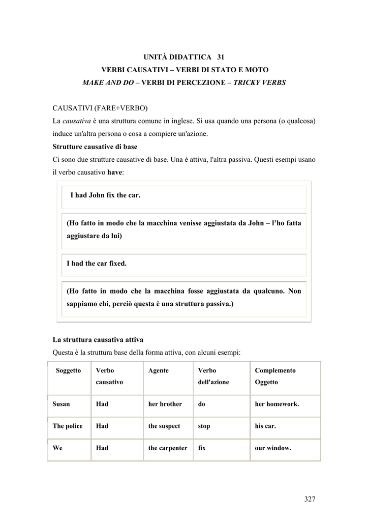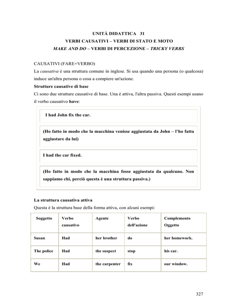 VERBI CAUSATIVI – VERBI DI STATO E MOTO