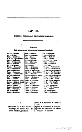 Dette abbreviazioni impiegate nel tegnente Vocabolario.