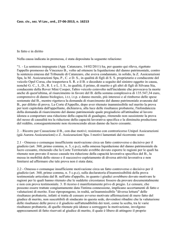 Cass. civ., sez. VI Lav., ord., 27-06-2013, n. 16213 In