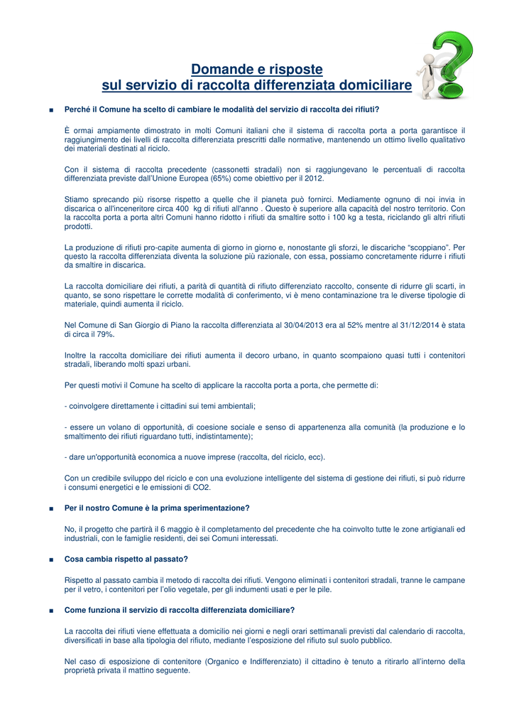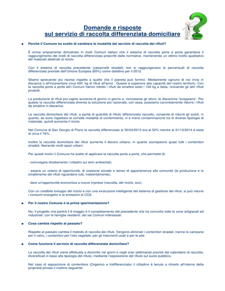 Domande e risposte sul servizio di raccolta differenziata domiciliare