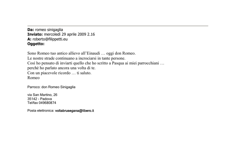 Sono Romeo tuo antico allievo all`Einaudi... oggi
