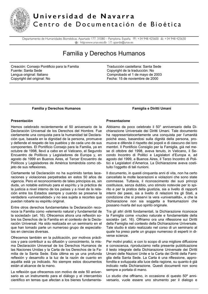 Universidad de Navarra Centro de Documentaci‡n de Bio tica