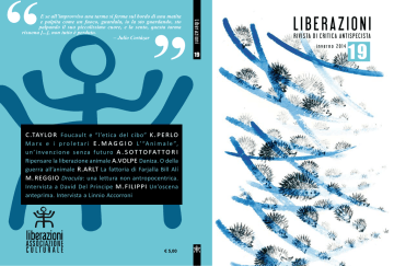 Liberazioni E se all’improvviso una tarma si ferma sul bordo di una matita e palpita come un fuoco, guardala, io la sto guardando, sto palpando il suo piccolissimo cuore, e la sento, questa tarma risuona [...], non tutto è perduto. – Julio Cortázar 19 c.taylor Foucault e “l’etica del cibo” k.perlo M a r x e i p r o l e t a r i e . m a g g i o L’ “A n i m a l e ”, u n ’ i nv e n z i o n e s e n za f u t u ro a . s ot to fat to r i Ripensare la liberazione animale a.volpe Daniza. O della guerra all’animale r.arlt La fattoria di Farjalla Bill Alí m.reggio Dracula: una lettura non antropocentrica. Intervista a David Del Principe m.filippi Un’oscena anteprima. Intervista a Linnio Accorroni € 5,00 LIBERAZIONI R i v i s ta d i c ri t i c a an t i s p e c i s ta inverno 2014 19 Liberazioni Trimestrale Anno V n. 19 / Dicembre 2014 Associazione Culturale Liberazioni Viale del Mercato Nuovo 44/G, 36100 Vicenza C.F. 03606200248 Direttore responsabile Fausta Bizzozzero Redazione Luca Carli, Serena Contardi, Silvana Ferrara, Massimo Filippi, Luigia Marturano, Marco Reggio, Aldo Sottofattori, Filippo Trasatti Abbonamenti - Annuale (4 numeri): 18 € - Annuale sostenitore (4 numeri): a partire da 30 € Abbonamenti per l’Europa - Annuale (4 numeri): * con invio trimestrale: 36 € * con invio semestrale: 30 € * invio annuale: 27 € - Annuale sostenitore (4 numeri) con invio trimestrale: a partire da 50 € Collaboratori Ralph R. Acampora, Carol J. Adams, Matthew Calarco, Matthew Cole, Vinciane Despret, Andrew Linzey, Emilio Maggio, Raffaele Mantegazza, Marco Mazzeo, Gianfranco Mormino, Iscrizione all’associazione - Quota associativa annuale: 18 € David Nibert, Benedetta Piazzesi, Tom Regan, Antonio Volpe Per richieste e informazioni Copertina e illustrazioni: Luigia Marturano [email protected] Impaginazione e grafica: Silvana Ferrara Finito di stampare nel Dicembre 2014 presso Yoo Print S.r.l., Via G. Mazzini 34, Gessate (MI) Autorizzazione del Tribunale di Vicenza n. 1223 del 16 marzo 2010 Gli articoli pubblicati esprimono esclusivamente le idee e il punto di vista dei rispettivi autori che non sono necessariamente condivisi dalla redazione. www.liberazioni.org - [email protected] Dove trovare la rivista Libreria Palomar - Via Angelo Maj, 10 Coordinamento liberselvadec [email protected] Bologna Libreria Naturista New Age - Via degli Albani, 2 Brescia Capre e Cavoli Bar Bistrot - Via Moretto, 61 Conegliano Parafarmacia La nuova Prospettiva - Via Manin, 31/g Cesena Spazio Libertario "Sole e Baleno" - subb. Valzania, 27 www.spazio-solebaleno.noblogs.org Firenze Dolce vegan - Via San Gallo, 92 r Forlì Equal Rights Forlì - [email protected] Bergamo Genova Libreria Occupata - Vico superiore di Pellicceria, 1 Marina di Carrara Milano Libreria Pianeta Fantasia - Via Rinchiosa, 36 Monza Padova Palermo Pescara Pistoia Pordenone Rimini Roma Torino Verona Zocca Libreria COOP Statale - Via Festa del Perdono, 12 Merry Cherry Vegan - Via Rubens, 14 Gastronomia La Pentola Vegana - Via Lecco, 18 Circolo ARCI La luna nuova - Via Barbarigo, 12 Laboratorio Antispecista - presso l’infoshop "Le Rat" p.zza Raffaele Busacca, 5/7 e su www.laboratorioantispecista.org Libreria Naturista - Via Ancona, 66 Ass. Centro di Documentazione - Via S. Pertini, snc Libreria Al segno - Piazza del Cristo, 7 Biblioteca Gambalunga - Via Gambalunga, 27 Biblioteca Casa del Parco - Via della Pineta Sacchetti, 78 Biblioteca Comunale Corviale - Viale M. Mazzacurati, 76 Rewild cruelty-free club - Via Giovannipoli, 18 Centro Studi Sereno Regis - Via Garibaldi, 13 Libreria Comunardi - Via Conte Giambattista Bogino, 2 Paginadodici - Corte Sgarzerie, 6a Associazione Green Riot - [email protected] L’elenco aggiornato è reperibile su www.liberazioni.org Per aiutarci a distribuire la rivista o segnalare altri punti vendita, scrivere a: [email protected] LIBERAZIONI R i v i s ta d i c ri t i c a an t i s p e c i s ta pensare la questione animale In qualunque modo lo si voglia interpretare, qualunque conseguenza di natura pratica, tecnica, scientifica, giuridica, etica o politica se ne tragga, oggi nessuno può negare tale evento, cioè le proporzioni senza precedenti dell’assoggettamento dell’animale. [...] Nessuno può disconoscere seriamente tale disconoscimento. Nessuno può più continuare seriamente a negare che gli uomini fanno tutto ciò che possono per nascondere o per nascondersi questa crudeltà, per organizzare su scala mondiale l’oblio o il disconoscimento di tale violenza che qualcuno potrebbe paragonare ai peggiori genocidi […]. Non bisogna né abusare né tralasciare frettolosamente la figura del genocidio. Perché a questo punto essa si complica: l’annientamento è certamente in atto ma tale annientamento sembra passare attraverso l’organizzazione e lo sfruttamento di una sopravvivenza artificiale, infernale, virtualmente interminabile, in condizioni che gli uomini del passato avrebbero giudicato mostruose, al di fuori di ogni supposta norma di vita degli animali che vengono così sterminati nella loro sopravvivenza o addirittura nella loro moltiplicazione. [...] Tutti sanno quali terribili e insostenibili quadri sarebbe in grado di approntare una pittura realistica della violenza industriale, meccanica, chimica, ormonale, genetica, cui l’uomo da due secoli sottopone la vita animale. E che cosa è diventata la produzione, l’allevamento, il trasporto e l’uccisione degli animali. Invece di sottoporvi delle immagini, o di ricordarvele, cosa troppo facile e troppo lunga, voglio dirvi solo una parola di questo «pathos». Se è vero che queste immagini sono «patetiche», è anche vero che esse aprono pateticamente l’immensa questione del pathos e del patologico, appunto, della sofferenza, della pietà e della compassione. E anche al ruolo che occorre dare all’interpretazione della compassione, alla condivisione della sofferenza tra viventi, al diritto, all’etica, alla politica, c