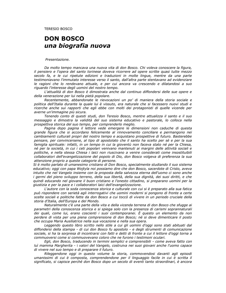 Narra la vita di don Bosco, non dà nulla per scontato, e tiene conto di tutto ciò che sta