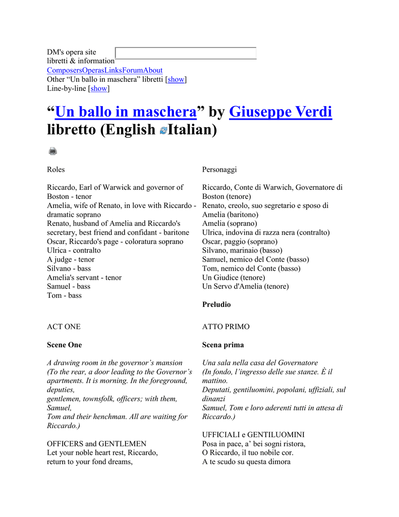 “Un ballo in maschera” by Giuseppe Verdi libretto (English Italian)