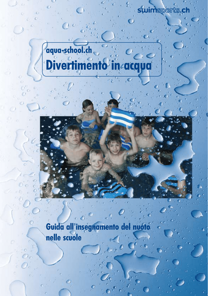 aqua-school.ch Divertimento in acqua Guida all’insegnamento del nuoto nelle scuole Nuoto scolastico: come, cosa, perché? · La vostra lezione di nuoto soddisfa le vostre aspettative? · Sapete quando i bambini sono sicuri in acque profonde? · In che modo potete migliorare la sicurezza degli alunni a bordo vasca e in acqua? · Conoscete le condizioni legali, didattiche e locali per un buon insegnamento del nuoto? · Desiderate conferire alle vostre lezioni di nuoto l’importanza che meritano? Vi aiutiamo ad ottimizzare l’insegnamento del nuoto, per favorire la sicurezza in acqua e il piacere di nuotare! Il nuoto: attività sportiva di base Il nuoto è la base di ogni attività sportiva acquatica. Senza capacità sufficienti, nessuna di queste attività può essere svolta con sicurezza. Con il rampichino/ciclismo e l’escursionismo/walking, il nuoto è fra le attività sportive più amate dagli svizzeri. Sono migliaia le persone che nuotano in piscine, fiumi e laghi nelle calde giornate estive nelle piscine coperte durante la stagione invernale. Gli incidenti mortali sono fortunatamente rari: negli ultimi otto anni (2000-2007), nella fascia d’età fra i 5 e i 16 anni sono annegati 45 bambini, 15 in piscina, una media di meno di due bambini l’anno. Ancora più rari sono gli annegamenti nell’ambito del nuoto scolastico. Il presente opuscolo si propone di incoraggiare i docenti a offrire lezioni di nuoto di qualità, variate e sicure. Con una formazione appropriata, potendo contare su un’infrastruttura adeguata e sul necessario supporto della direzione scolastica e delle autorità, il già limitato rischio d’incidente nel nuoto scolastico può essere ulteriormente ridotto. 2 Basi legali Direttive cantonali I comuni e i cantoni si avvalgono di prescrizioni differenti inerenti all’ambito scolastico e agli sport acquatici. Informatevi presso l’ente preposto! Raccomandazioni delle società di nuoto swimsports.ch e i suoi partner esprimono le seguenti tre raccomandazioni per l’insegnamento del nuoto in ambito scolastico. · Il docente deve imperativamente disporre di una formazione adeguata di sicurezza in acqua (per esempio SSS B1, Pool Safety ecc.) e di una formazione metodologica e didat tica all’insegnamento del nuoto, o della relativa esperienza. Essa si orienta alle condizioni locali e personali (solamente acque basse, diverse vasche, acque profonde, bagnino in piscina ecc.). · Se vi sono più di 12-16 bambini (a dipendenza delle capacità dei bambini e della formazione dell’insegnante) si impone la presenza di un assistente, ad esempio un altro insegnante o un sorvegliante. Scaricate i dettagli. · Controllo da parte dell’autorità di vigilanza cantonale e/o comunale. L’insegnamento del nuoto richiede una pianificazione accurata da parte dei docenti. Occorre, in particolare, conoscere le condizioni locali, discutere e fissare le regole con gli alunni ed essere consapevoli del dovere di vigilanza dell’insegnante. Se non si sente in grado di impartire le lezioni di nuoto con la dovuta diligenza, il docente è tenuto a richiedere lo scambio delle lezioni di nuoto con un altro docente. 3 Le premesse ottimali del nuoto scolastico L’organizzazione di lezioni di nuoto in ambito scolastico dipende da svariati fattori, fra cui: · la creatività e l’impegno della direzione scolastica e dei docenti, · la formazione specifica e il perfezionamento del corpo insegnante, · la possibilità di assumere istruttori di nuoto, · la struttura disponibile, le possibilità finanziarie, · l’impegno dei genitori. Un’analisi di questi fattori e delle direttive vigenti a livello locale consente di organizzare lezioni di nuoto scolastico specifiche ed efficaci. Situazione ideale: maestro di nuoto (istruttore di nuoto, insegnante di educazione fisica con specializzazione, istruttore aqua-prim.ch) in collaborazione con il docente di classe. Sconsigliato: docente di classe privo di una formazione adeguata sulla sicurezza negli sport acquatici e senza o con poca formazione particolare nell’ambito specifico del nuoto. La sicurezza Per sua natura, prima di poter assaporare appieno i piaceri dell’acqua l’essere umano deve prendere dimestichezza con le caratteristiche di questo elemento. Perciò, anche l’apprendimento del nuoto deve attraversare le tre fasi: 1. ambientamento all’acqua, 2. superare la paura dell’acqua / muoversi liberamente in acqua, 3. apprendere le tecniche del nuoto. Migliorare le proprie capacità in acqua è un contributo imprescindibile alla sicurezza vicino e in acqua. Soltanto chi ha attraversato tutte e tre le fasi di apprendimento del nuoto può muoversi in acqua in modo sicuro ed efficace. La scuola ha tutto l’interesse a che ogni alunno sia capace di nuotare, poiché ciò consente in viaggi di studio, escursioni e gite scolastiche di maturare esperienze fuori, dentro e sull’acqua altrimenti impossibili da realizzare. 4 Il Controllo della Sicurezza in Acqua (CSA) Il controllo della sicurezza in acqua serve a verificare se una persona che cade in acqua è in grado di portarsi da sola in salvo a bordo vasca o a riva. Effettuare una capriola in acque profonde Restare 1 minuto a galla sul posto Nuotare per 50 m Ogni istituto scolastico dovrebbe offrire agli allievi la possibilità di verificare il loro grado di sicurezza in acqua. In Svizzera, ogni bambino in età scolare dovrebbe conseguire il CSA se possibile già entro la terza, al più tardi entro la quinta elementare. Per le persone cui incombe l’obbligo di vigilanza (genitori, insegnanti ecc.) il CSA rappresenta lo standard minimo per lasciare i bambini nell’acqua alta senza sorveglianza stretta. Come ottenere il CSA Per superare questo test occorre elaborare le necessarie capacità durante le lezioni di nuoto a scuola, con i genitori o in seno ad una società di nuoto. Il test viene ad esempio realizzato nella fase 5 del nuoto scolastico proposto da swimsports.ch (vedi pag. 7, fas