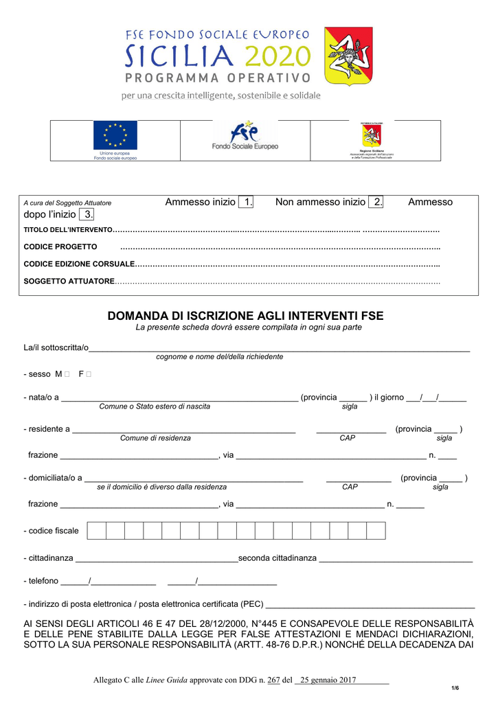 domanda di iscrizione agli interventi fse