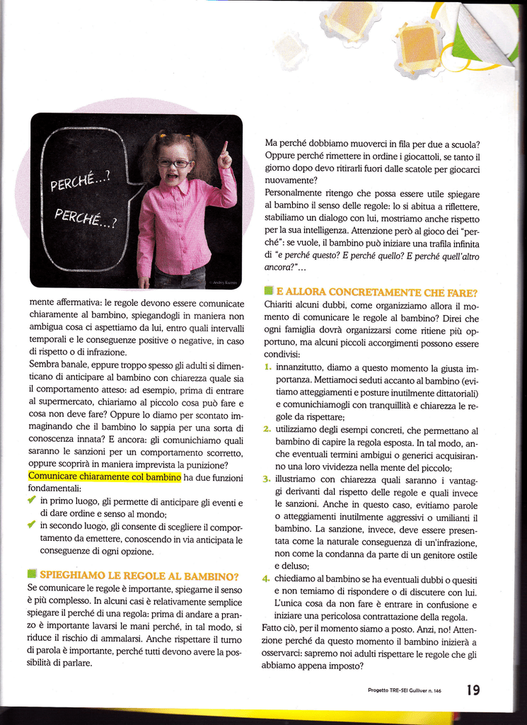 Chiariti alcuni dubbi, come organizziamo allora il momento di comunicare le regole al bambino? Direi che