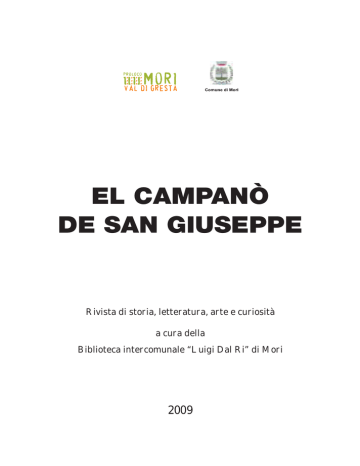 EL CAMPANÒ DE SAN GIUSEPPE Rivista di storia, letteratura, arte e curiosità a cura della Biblioteca intercomunale “Luigi Dal Ri” di Mori 2009 In copertina: Rosina e Giulia Montanari in una foto del 1901. (per gentile concessione del Museo Civico del Risorgimento di Bologna). Redazione presso: Biblioteca intercomunale “Luigi Dal Ri” di Mori Via Scuole n. 7 - Tel. 0464 916260 Fax 0464 910684 e-mail: [email protected] In redazione: Edoardo Tomasi Marco Torboli «El Campanò de San Giuseppe» Anno XXIV - 2009 Aut. Tribunale di Rovereto n. 122 del 3.4.1986 Direttore responsabile: Marco Torboli Fotocomposizione, fotolito e stampa: La Grafica Srl - Mori (Tn) Copertina: Lorenzo Manfredi Finito di stampare nel mese di settembre 2009 Tiratura n. 800 copie Per i numeri arretrati rivolgersi alla Biblioteca “Luigi Dal Ri” di Mori È aperta a tutti la collaborazione gratuita. La Redazione lascia agli Autori la responsabilità delle opinioni e dei giudizi espressi. È fatto divieto di riprodurre, anche parzialmente, articoli ed illustrazioni senza riferimento alla rivista e agli Autori. II PRESENTAZIONE Per il secondo anno El Campanò de San Giuseppe ritorna ad incontrare la comunità di Mori in stretta simbiosi con gli eventi della Ganzega d’Autunno. Non si tratta di una combinazione casuale ma di una scelta ben precisa che la Pro Loco Mori Val di Gresta, che ne cura la pubblicazione unitamente al prezioso apporto del Comitato di Redazione e della Biblioteca Luigi Dal Ri ha ritenuto opportuno compiere. Se, come scrisse Oscar Wilde, “la tradizione è la migliore innovazione” a buon diritto i nostri luoghi, il nostro territorio, la nostra gente, in questi anni anche attraverso le proposte della Ganzega, hanno saputo darsi una identità nel proporre le tradizioni di un popolo, quello trentino, la sua storia, l’importante bagaglio delle generazioni passate, come patrimonio per interpretare le grandi sfide del presente. L’edizione 2009 del Campanò de San Giuseppe, arricchita nei contenuti che un Comitato di Redazione attento ed appassionato ha saputo proporre, farà da retroterra storico agli eventi della Ganzega d’Autunno ma più ancora avvicinerà il lettore al nostro vissuto quotidiano, al “valore uomo” con il suo patrimonio di vita e ai luoghi della memoria. III Il grazie della Pro Loco Mori Val di Gresta va a tutti coloro che hanno contribuito all’edizione 2009 del Campanò, al Comitato di Redazione, alla Biblioteca Luigi Dal Ri, agli operatori economici e ai redattori dei contenuti che ogni anno con passione ci propongono quei pezzi della nostra storia altrimenti destinati a perdersi nel tempo. Il Presidente Flavio Bianchi Pro Loco Mori Val di Gresta Consiglio di Amministrazione Presidente Vicepresidente Segretaria Tesoriere Consigliere Consigliere Consigliere Consigliere Consigliere Consigliere Consigliere e Assessore al Turismo Consigliere Consigliere Consigliere Consigliere Consigliere Bianchi Flavio Bertolini Cristian Caliari Romina Angelini Giorgio Angeli Katia Bisoffi Marco Chizzola Carlo Comper Gino Dall’Alda Giampaolo Ferrari Lucia Gazzini Valter Girardelli Lucio Manica Giampaolo Marzari Fiorenzo Stimpfl Verena Zenatti Mirko IV EDITORIALE Vista la positiva esperienza dell’anno scorso, con la stampa di un numero speciale de El Campanò de San Giuseppe in occasione della Ganzega d’autunno, si conferma anche in questa edizione l’abbinamento Campanò-Ganzega. Lo slittamento della pubblicazione dalla Festa di primavera all’autunno è il risultato di un lungo percorso che ha portato prima il Comitato Turistico Locale ed ora la Pro Loco a valorizzare ed investire sulla Ganzega. Il Campanò rimane comunque il naturale compagno di viaggio di una festa che porta per le vie di Mori la storia e la cultura della nostra borgata. Un “contenitore” che da oltre trent’anni si affianca alle varie proposte turistico-culturali offerte ai residenti ed ai graditi ospiti della manifestazione, cercando sempre nuovi argomenti e spunti di riflessione tra le pieghe di un passato davvero ricco di storia. In questo numero, torna, dopo sei anni di assenza, l’agenda moriana con una carrellata di fatti salienti del 2008. Per molti sarà una sorpresa sapere che pure a Mori c’era un “ghetto” ebraico e che le caratteristiche “fratte” furono ricavate dagli erti fianchi della montagna utilizzando anche degli esplosivi: ce lo racconta un “inviato nel tempo” davvero speciale, Guido Boninsegna (1923-1984) storico corrispondente del giornale Alto Adige nel secondo dopoguerra, di cui riproponiamo un colorito “inno” a Ravazzone, scritto più di cinquanta anni fa. Ci accompagnerà nella lettura anche la nostra affezionata collaboratrice, quasi centenaria, Ione Benedetti. Questa edizione è particolarmente tinta di rosa, con una rubrica al femminile dedicata a due donne contemporanee ed V altre due, entrambe di nome Giulia, la cui storia personale si è intrecciata con quella della borgata nei secoli scorsi. Ci è parso doveroso ricordare Paolo Orsi nel 150° anniversario dalla nascita, mentre spiace rilevare che non sarà più possibile fare altrettanto sulla tomba di un nostro valido artista, Antonio Mayer, scomparsa di recente dal cimitero di San Marco a Rovereto. E poi tante curiosità e aneddoti di storia e personaggi locali: un unguento ritenuto miracoloso, un fortuito ritrovamento archeologico che ci farà fare un salto indietro nel tempo di 500 anni, la trascrizione di una biografia ottocentesca di Gustavo Modena, le nozze del conte Giuseppe Scipione di Castelbarco con Costanza Visconti, il trentesimo anniversario della Scuola dell’infanzia “Il Girasole” di Tierno. Senz’altro più tecnico l’articolo di Marta Villa che analizza i classici giochi da tavolo, rivolti sì ai ragazzi ma con intenti non proprio pedagogici… Per accompagnare gli ospiti della Ganzega in questo viaggio a ritroso, ci saranno vari interventi riferiti ai tempi della Grande guerra,