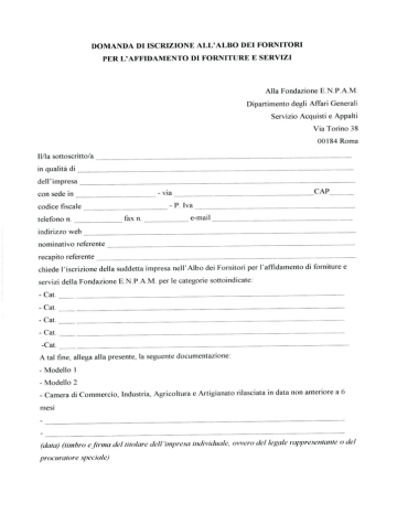 domanda di iscrizione all`albo dei fornitori per l`affidamento