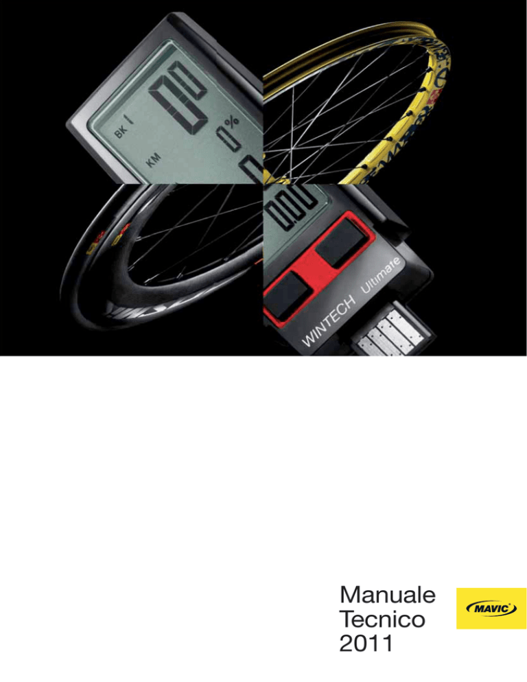 Manuale Tecnico 2011 2 2011 WWW.TECH-MAVIC.COM SOMMARIO 03 WWW.TECH-MAVIC.COM 04>26 04 05 06 07 08 09 10 11 12 13 14 15 16 17 18 19 20 21 22 23 24 25 26 27 RUOTE MAVIC® iO TRACK 11 COMÈTE TRACK 11 ELLIPSE 11 COMÈTE ROAD 11 COSMIC CARBONE ULTIMATE 11 COSMIC CARBONE 80 COSMIC CARBONE SLR 11 COSMIC CARBONE SR COSMIC CARBONE SL 11 COSMIC ELITE 11 R-SYS SLR TUBOLARE R-SYS SLR COPERTONCINO KSYRIUM SLR FRONT TUBOLARE KSYRIUM SLR FRONT COPERTONCINO KSYRIUM SR KSYRIUM SL 11 KSYRIUM ELITE 11 KSYRIUM EQUIPE 11 CROSSTRAIL DISC 11 CROSSRIDE DISC 11-15 MM CROSSRIDE DISC 11 INTL CROSSRIDE DISC 11 CL CROSSRIDE UB DISC 11 CROSSRIDE UB 11 28 29>34 30>31 32>33 34 PRECISAZIONI IMPORTANTI SUI CERCHI EXALITH® MANUTENZIONE DELLE RUOTE 2011 RAGGIATURA / CUSCINETTI MOZZO / REGOLAZIONE DEL GIOCO / NUOVO COPERCHIO SOSTITUZIONE DEGLI ADESIVI 35>37 ATTREZZI QUESTO DOCUMENTO RIGUARDA ESCLUSIVAMENTE LE NOVITÀ 2011. QUESTO DOCUMENTO E’ UN AGGIORNAMENTO DELLE VOSTRE INFORMAZIONI TECNICHE E DEVE ESSERE QUINDI CONSERVATO ACCURATAMENTE, SENZA LIMITI DI TEMPO, CON I MANUALI DEGLI ANNI PRECEDENTI. TUTTE LE INFORMAZIONI RIGUARDANTI I PRODOTTI GIA PRESENTI NELLE GAMME PRECEDENTI SI TROVANO NEI MANUALI TECNICI PUBBLICATI A PARTIRE DAL 1997. POTETE VISITARE IL SITO INTERNET WWW.TECH-MAVIC.COM PER RITROVARE L’INSIEME DELLE EDIZIONI DI QUESTO MANUALE A PARTIRE DAL 1997. 3 www.tech-mavic.com Questo sito (in francese, inglese, tedesco, spagnolo, italiano e giapponese) è dedicato interamente a voi. Di accesso facile e di semplice utilizzo (permette di scaricare documenti PDF), questo sito vi permette di consultare l’insieme delle informazioni contenute nei nostri manuali tecnici a partire dal 1997. All’indirizzo: www.tech-mavic.com troverete tutte queste informazioni. Per connettervi avrete bisogno di un identificativo (login) e di una parola chiave (password): Identificativo : mavic-it Parola chiave : dettaglianti Troverete in questo sito: • tutti i dettagli tecnici sulla totalità dei prodotti Mavic commercializzati a partire dal 1997, ruote, cerchi, componenti, divisi per disciplina e per prodotto; • 4 tabelle riassuntive per lunghezze e codici dei raggi di tutte le nostre ruote, che vi aiuteranno a gestire meglio il vostro stock di raggi; • un programma di calcolo per la lunghezza dei raggi: partendo da un dato cerchio Mavic, scegliete la foratura, il tipo di incrocio, la battuta del vostro mozzo,così come il diametro delle flange, le distanze tra flange e gli appoggi per telaio e forcella; la lunghezza dei raggi corrispondente al vostro montaggio sarà automaticamente calcolata. Speriamo che questo strumento possa rispondere alle vostre attese. Non esitate a segnalarci i suoi eventuali malfunzionamenti e a consigliare i possibili miglioramenti che vorreste vedere apportati nel futuro. 4 iO Track 11 Utilizzo : ruota esclusivamente anteriore da utilizzare esclusivamente su di una bicicletta da pista. Qualsiasi altro utilizzo (come su di una bicicletta da corsa, un tandem, una bicicletta da ciclo-cross, in fuori strada) è vivamente sconsigliato e fatto sotto esclusiva responsabilità dell’utente, comportando il decadimento della garanzia Mavic. Peso massimo consigliato per il ciclista ed il suo equipaggiamento : 100 kg. PESO RUOTE SENZA VITE DI FISSAGGIO CODICI RUOTE Anteriore Anteriore 750g Ø FORO VALVOLA SEZIONE DI TUBOLARE CONSIGLIATA Ø : 6,5 mm Lungh. : ≥ 32 mm Dimensioni : Ø 700 633 mm Soltanto tubolare / Sezione consigliata : da 18 a 21 mm MOZZO 111 554 10 MANUTENZIONE : Pulizia con uno straccio asciutto o, se necessario, con acqua e sapone. Evitare il lavaggio ad alta pressione M40124 M40131 M40130 ACCESSORI • Vite di fissaggio M40124 • Borsa • Istruzioni ruota RUOTE FORNITE CON : MANUTENZIONE Regolazione dei cuscinetti Vedere MT 2011 pag. 31 5 COMÈTE Track 11 Utilizzo : ruota esclusivamente posteriore da utilizzare esclusivamente su di una bicicletta da pista. Qualsiasi altro utilizzo (come su di una bicicletta da corsa, un tandem, una bicicletta da ciclo-cross, in fuori strada) è vivamente sconsigliato e fatto sotto esclusiva responsabilità dell’utente, comportando il decadimento della garanzia Mavic. Peso massimo consigliato per il ciclista ed il suo equipaggiamento : 100 kg. Ø FORO VALVOLA CODICI RUOTE Posteriore Posteriore 980g 111 549 13 SEZIONE DI TUBOLARE CONSIGLIATA Dimensioni : Ø 700 633 mm Soltanto tubolare / Sezione consigliata : da 18 a 21 mm Ø : 6,5 mm Lungh. : ≥ 32 mm MOZZO PESO RUOTE SENZA DADO DI SERRAGGIO MANUTENZIONE : Pulizia con uno straccio asciutto o, se necessario, con acqua e sapone. Non utilizzare in alcun caso prodotti solventi. Evitare il lavaggio ad alta pressione. M40772 M40129 M40128 ACCESSORI • Dadi di serraggio M40772 • Borsa • Istruzioni ruota RUOTE FORNITE CON : MANUTENZIONE SOSTITUZIONE DELL’ASSE E DEI CUSCINETTI 1. Con 2 chiavi piatte da 15 mm, svitate le viti di fine asse. Una sola delle 2 deve svitarsi dall’asse per permettere a quest’ultimo di uscire dal mozzo; 2. Per smontare la 2° vite di fine asse, inserite una chiave a brugola da 5 mm all’interno dell’asse dal lato opposto alla vite di fine asse restante, mantenete ferma la vite di fine asse con una chiave piatta da 15 mm e svitate l’insieme; 3. Estraete i cuscinetti e rimontate i nuovi; 4. Ripetete la procedura 1 qui sopra all’inverso. 6 ELLIPSE 11 Utilizzo : da utilizzare esclusivamente su di una bicicletta da pista. Qualsiasi altro utilizzo (come su di una bicicletta da corsa, un tandem, una bicicletta da ciclo-cross, in fuori strada) è vivamente sconsigliato e fatto sotto esclusiva responsabilità dell’utente, comportando il decadimento della garanzia Mavic. Peso massimo consigliato per il ciclista ed il suo equipaggiamento : 100 kg. CODICI COMMERCIALI CERCHI PESO RUOTE SENZA DADI DI SERRAGGIO CODICI RUOTE Anteriore Posteriore Anteriore Posteriore Coppia SEZIONE DI PNEUMATICO CONSIGLIATA Dimensioni : ETRTO 622 x 15C Sezione di pneumatico consigliata : da 19 a 