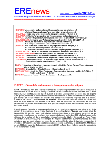 tenu une série de débats relatifs à la religion (voir liste des Recommandations dans EREnews 2007/1). Pour