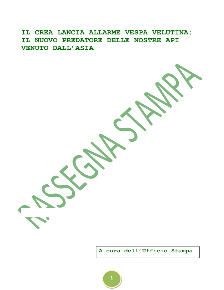 IL CREA LANCIA ALLARME VESPA VELUTINA: IL NUOVO