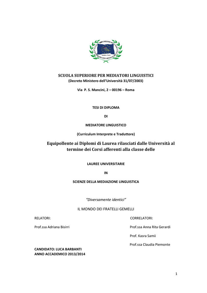 SCUOLA SUPERIORE PER MEDIATORI LINGUISTICI