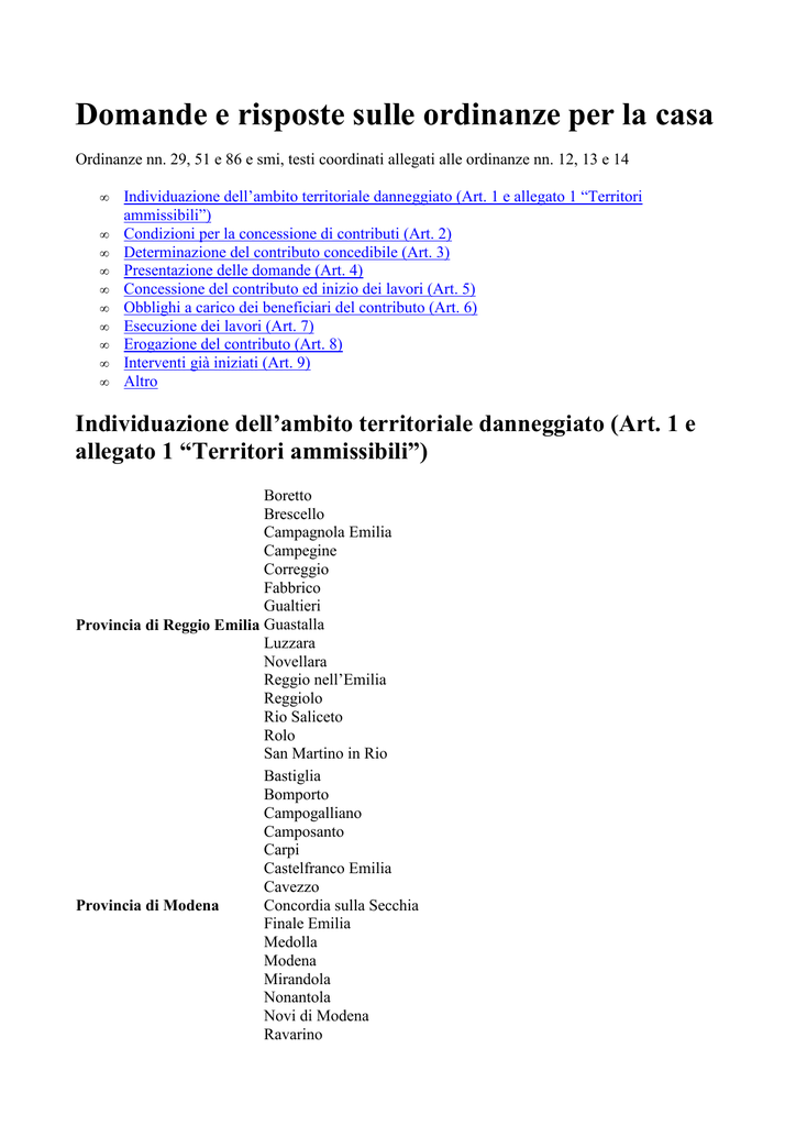 Individuazione dell’ambito territoriale danneggiato (Art. 1 e
