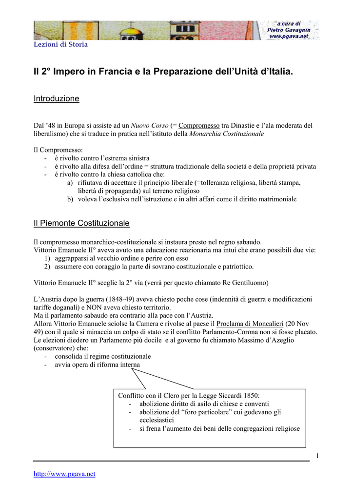 Il 2° Impero in Francia e la Preparazione dell`Unità d`Italia.