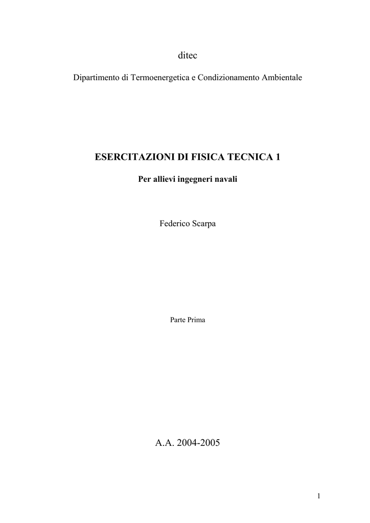 ditec ESERCITAZIONI DI FISICA TECNICA 1 A.A. 2004-2005