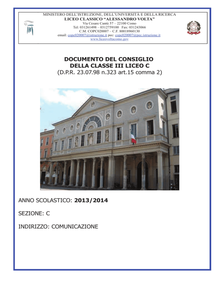 DOCUMENTO DEL CONSIGLIO DELLA CLASSE III LICEO C